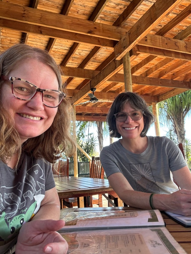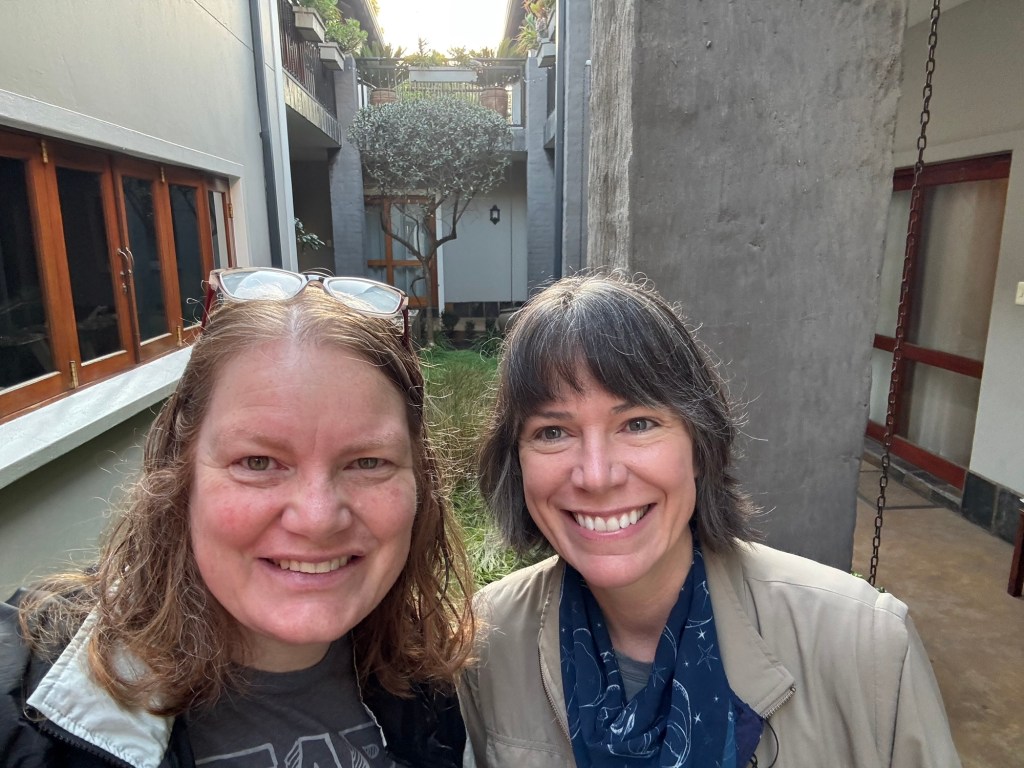 Okay…back to the trip. When it was finally time to board the plane to Johannesburg, I was ready. I didn’t know what to expect, but the best thing occurred. There was an empty seat between my other seat mate and me. I was in economy, so this was a dream come true. Even better, Sarah and I became fast friends and talked the night away. She was even braver than me because she was going on a trip with total strangers. Her husband didn’t love to travel, so she found a women’s travel group and took off. I really admire Sarah and hope to be brave like her one day.
