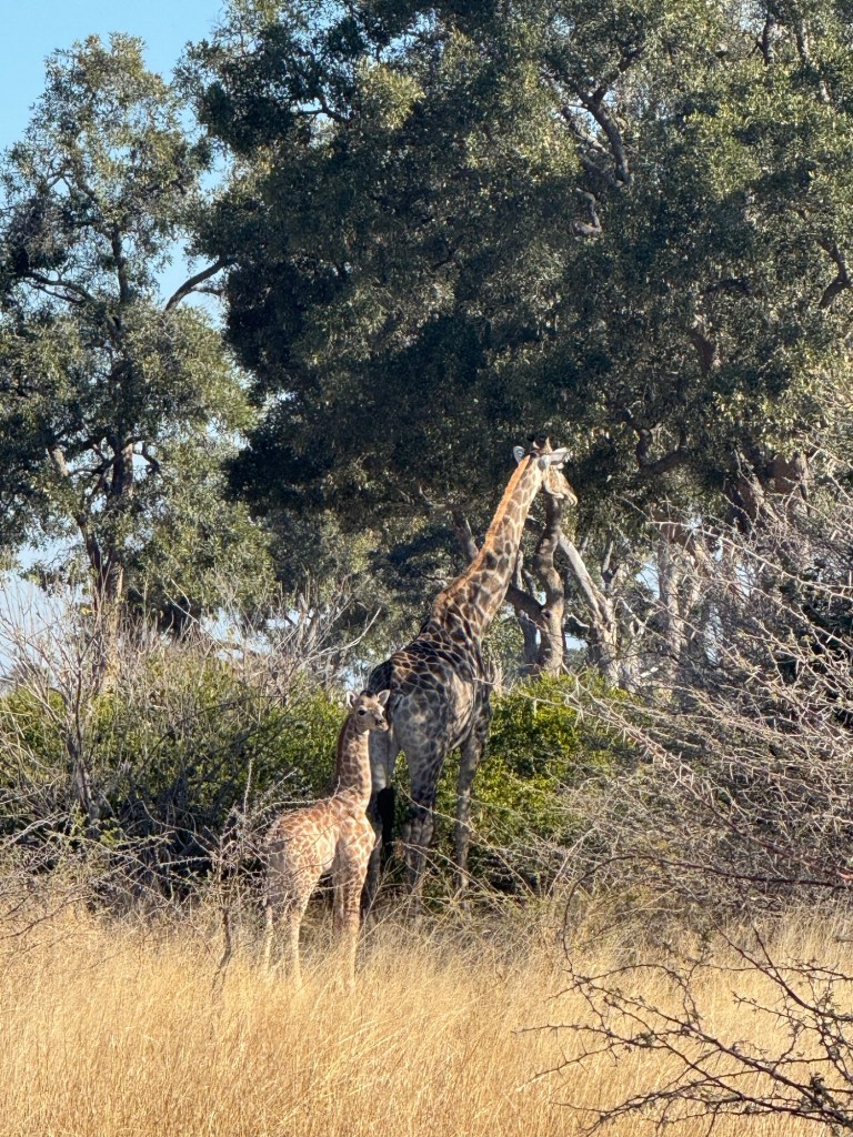 Giraffes seemed to be flourishing in the bush as we came upon them quite often. We saw many adorable calves close to their moms. It’s always a good sign when the babies are able to evade another animal’s mealtime.