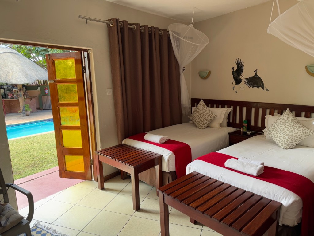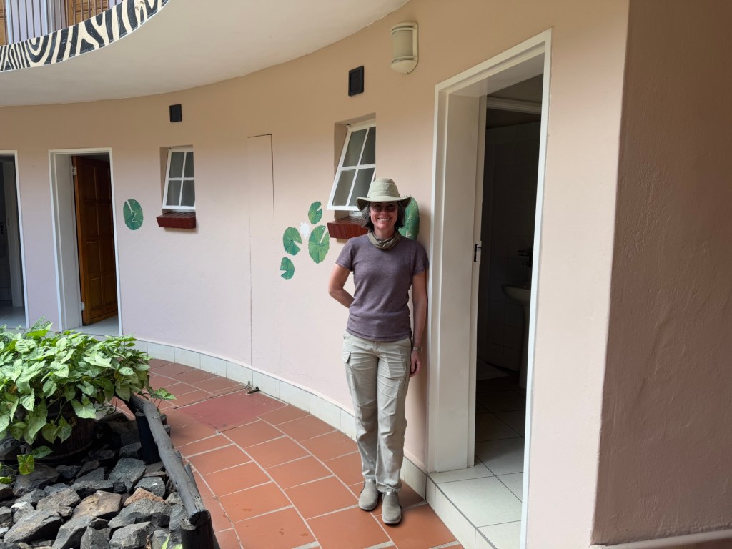 We finally arrived at our lodge, and it was in a busy town. Heading through the security gate, we found the check in quite easy. My room had double doors that opened to a swimming pool and provided a lovely view. Mark ventured outside our hotel, but Jenny and I nestled down in our separate rooms and slept. With all the animals who visited our campsites, I finally felt like I could sleep free from fear.