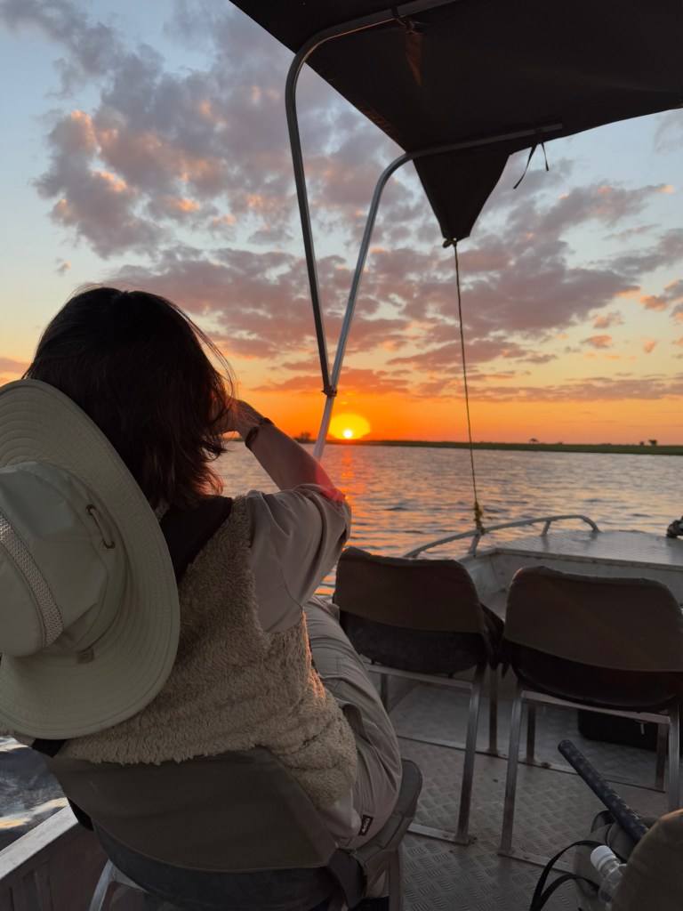 As we got into the boat, we discovered that one side of the shore was Botswana, and the other side was Namibia. I longed to step foot in a new country, but that was not to be. Namibia’s riverfront property was filled with tall grasses.