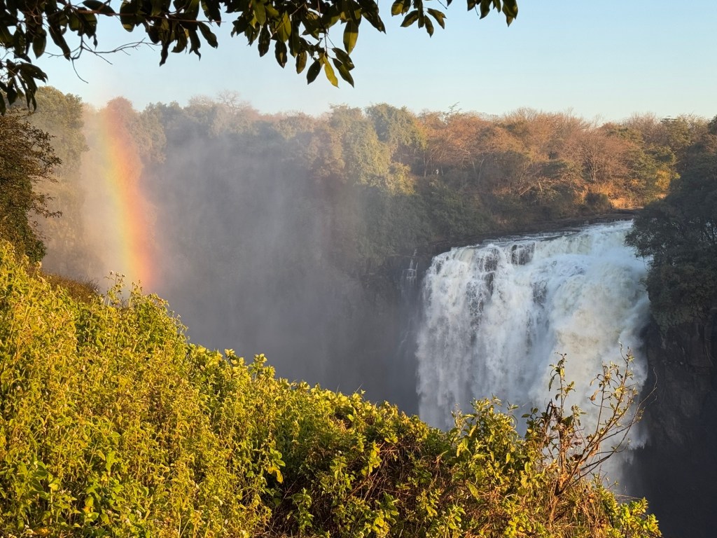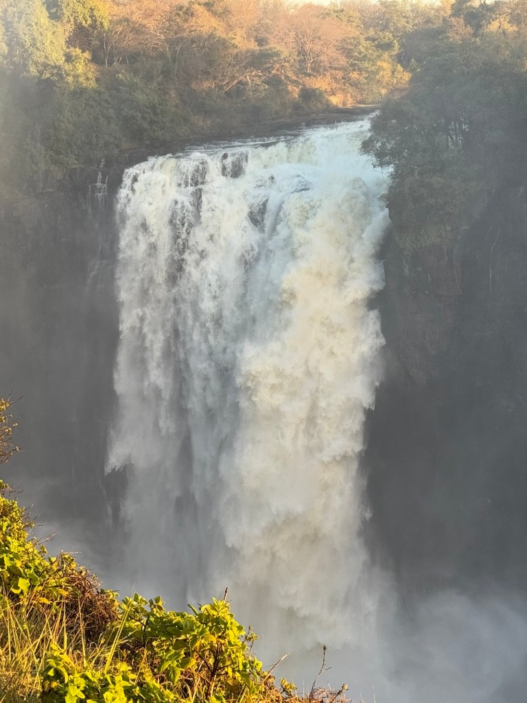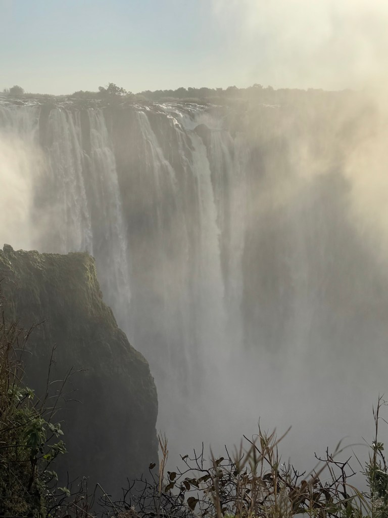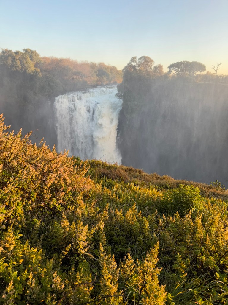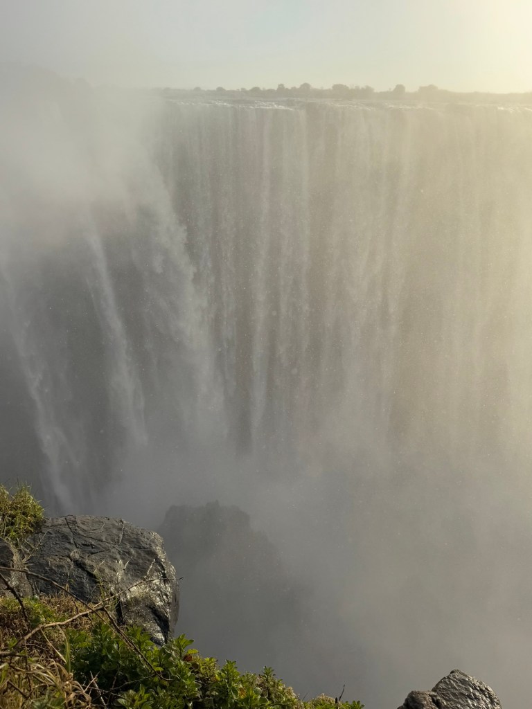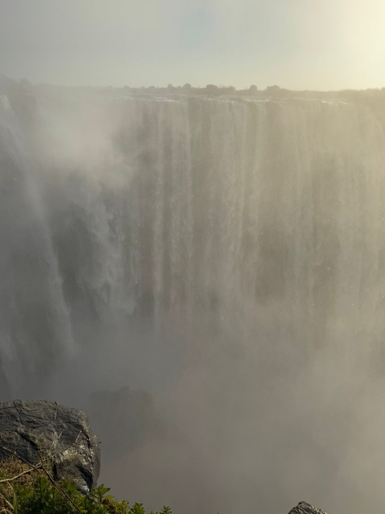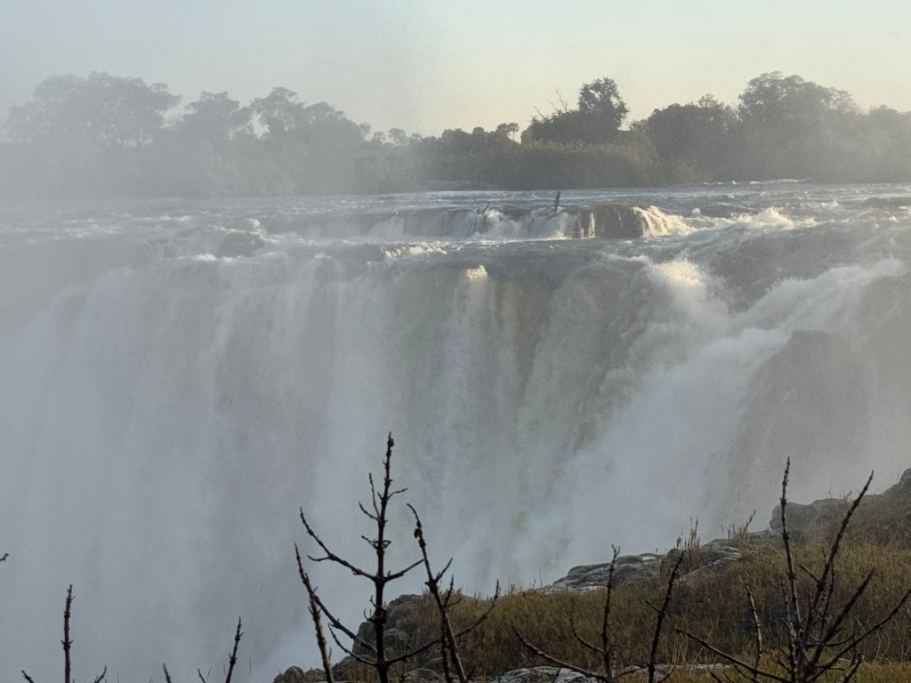 Our entrance into the Zimbabwe side of Victoria Falls occurred at 6:00AM, so we could experience the Falls with fewer people. It also gave us the opportunity to watch the sunrise over the falls. As exhausting as it was to wake before the hotel began breakfast service, witnessing a sunrise over one of the seven wonders was incredible.