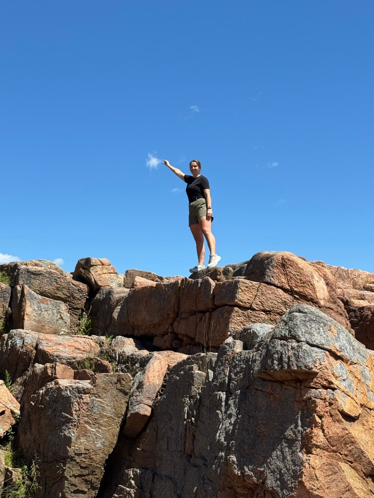 I took in a deep breath and smelled the distinctive ocean smells. I listened for the different bird calls, and I looked for life on the islands further away. Eventually I wandered over to the rocky shore. We all met there and enjoyed a bit of bouldering.