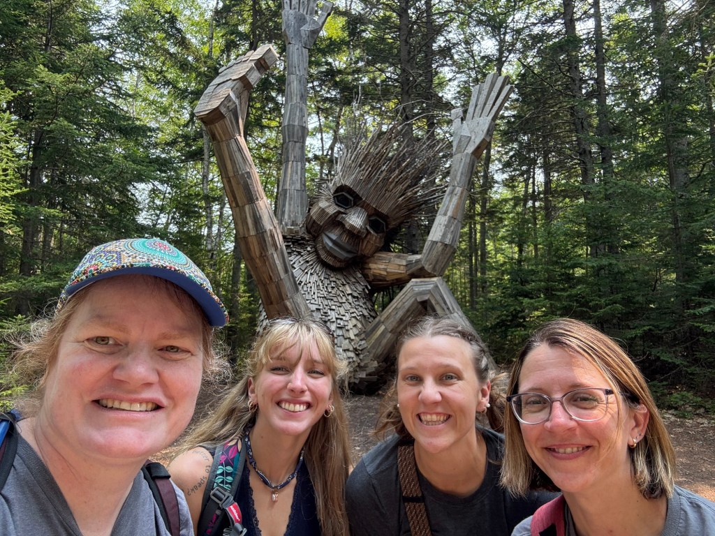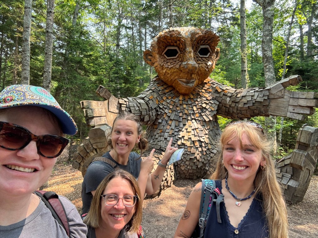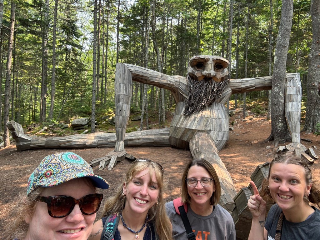I’d never participated in a troll hunt before. Oddly enough, my phone began showing me ads for the Coastal Maine Botanical Gardens—highlighting the Dambo trolls—after an innocuous conversation with my principal. They looked fun, so I texted the ladies before our trip. No one really replied to my text, but lo and behold, the trolls made the cut!