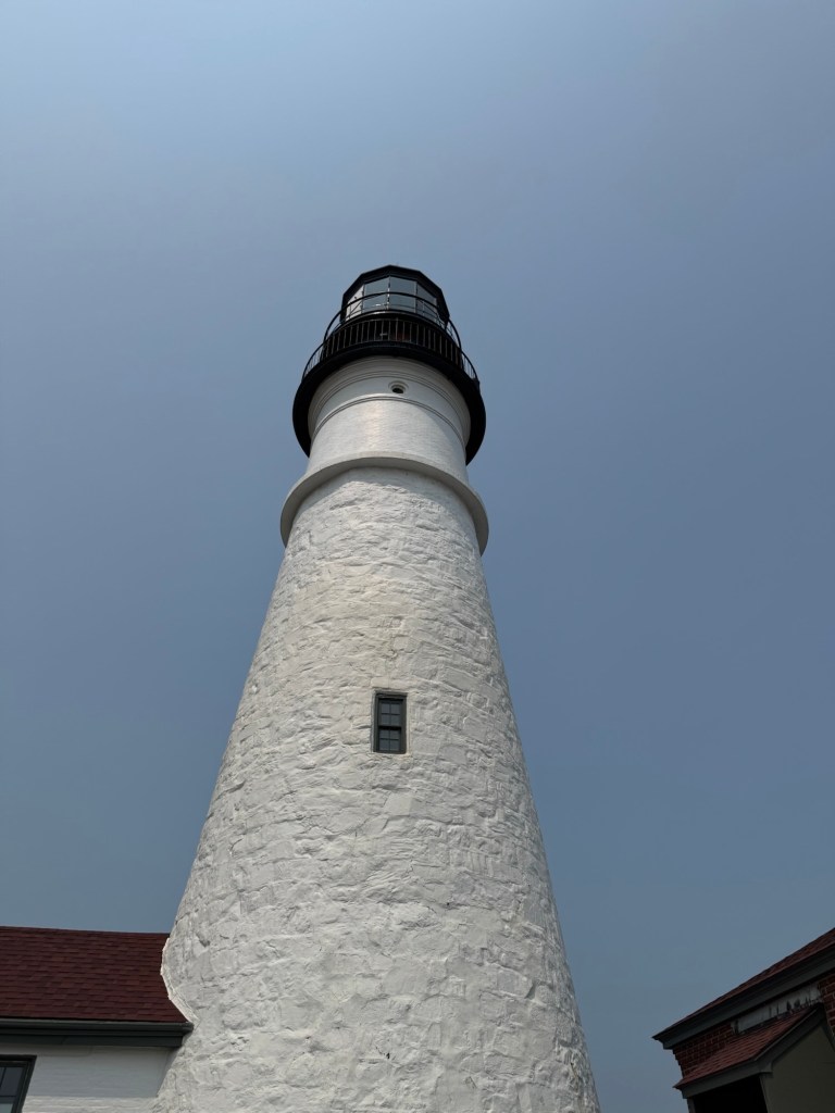 As we waited, we all talked. Eventually Madison took leave to get closer to the deserted lighthouse. Tracy and I did too. We found many new-to-us angles and experienced the Portland Light Head in the much needed peace.
