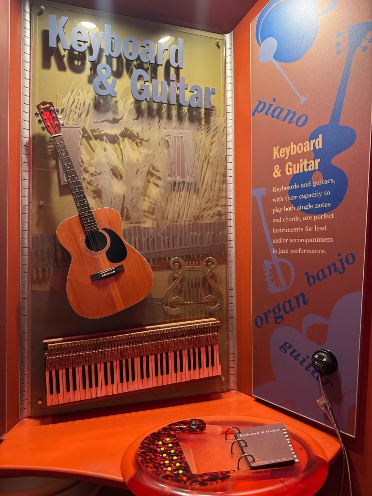 The second section of the museum includes musical instruments and individual lessons with each one. Walk up to the guitar and immerse yourself in its unique sound. How does the guitar blend with other instruments? What is its function in a jazz band? What importance did it play in this amazing history?