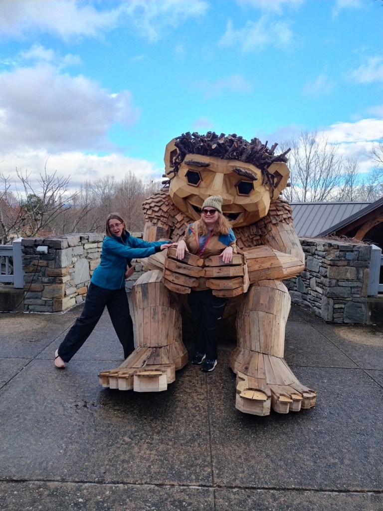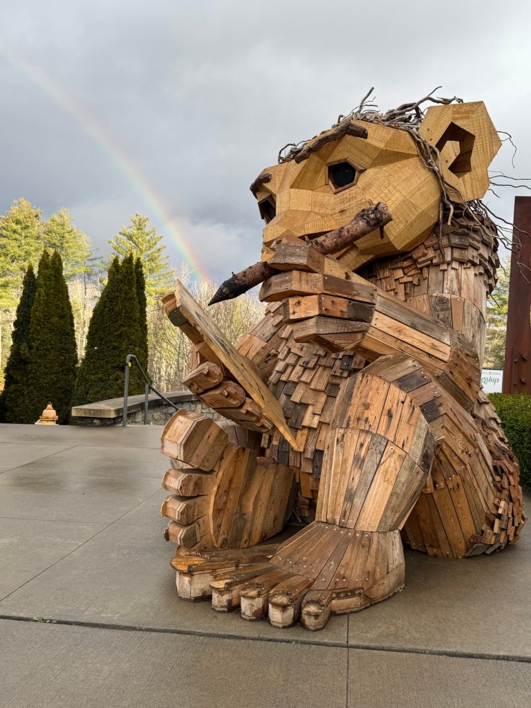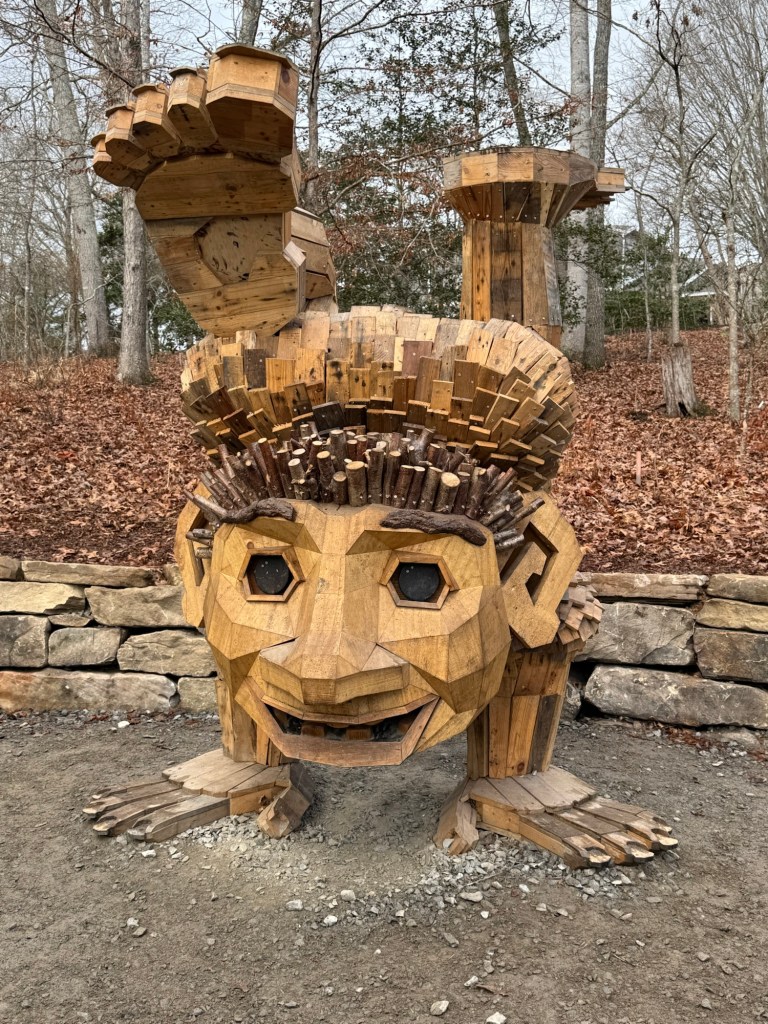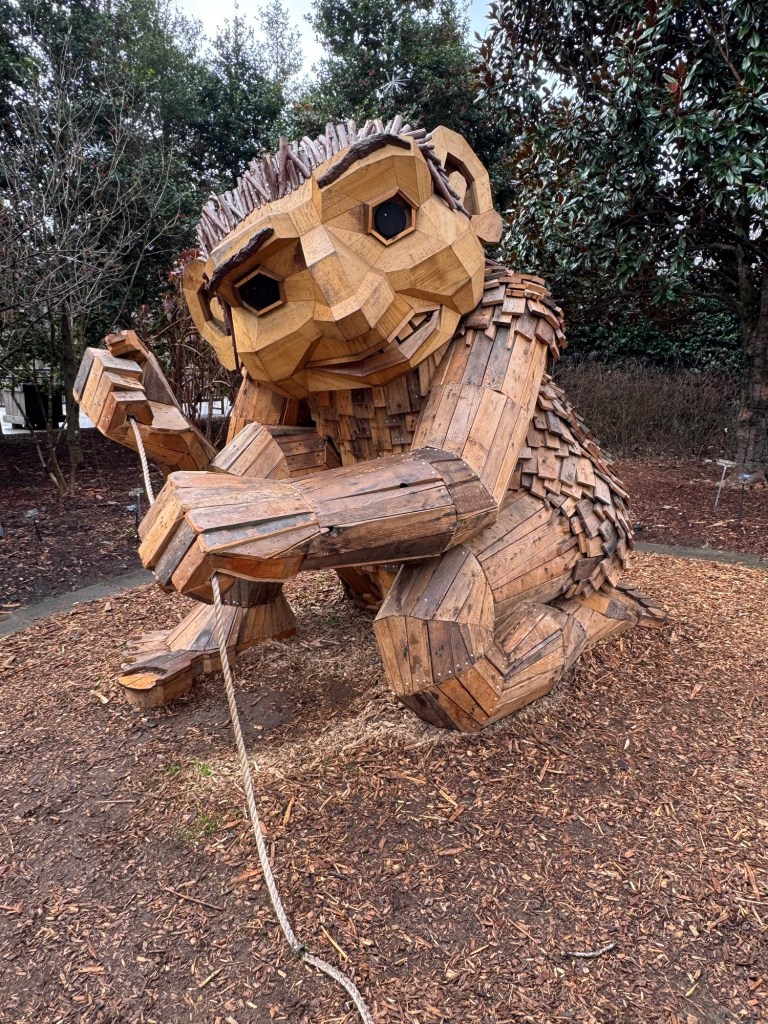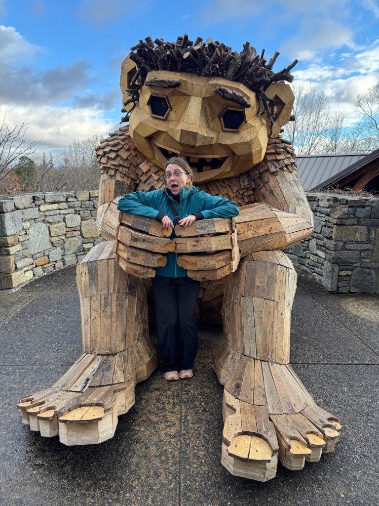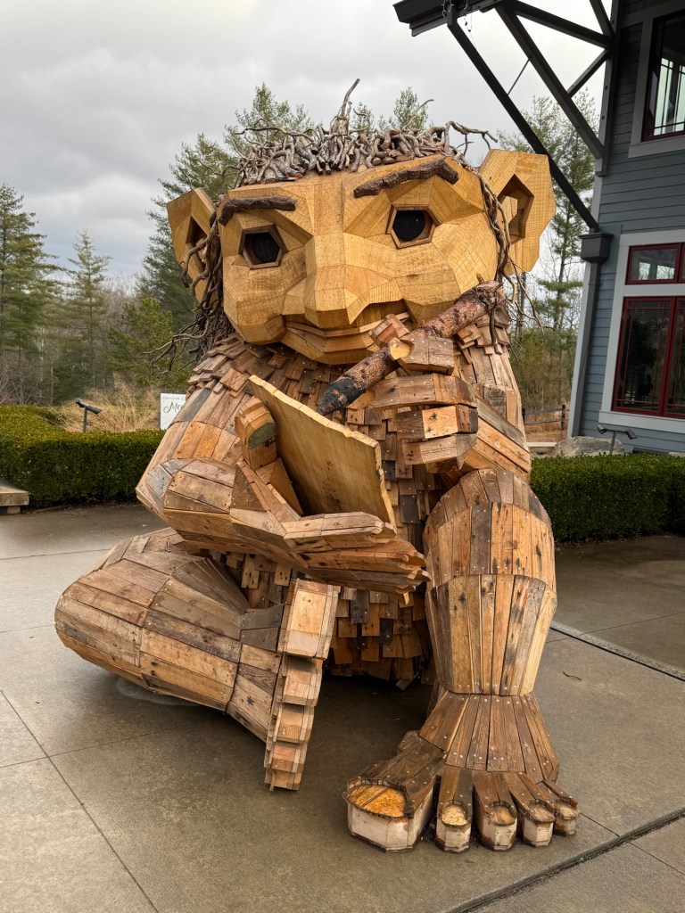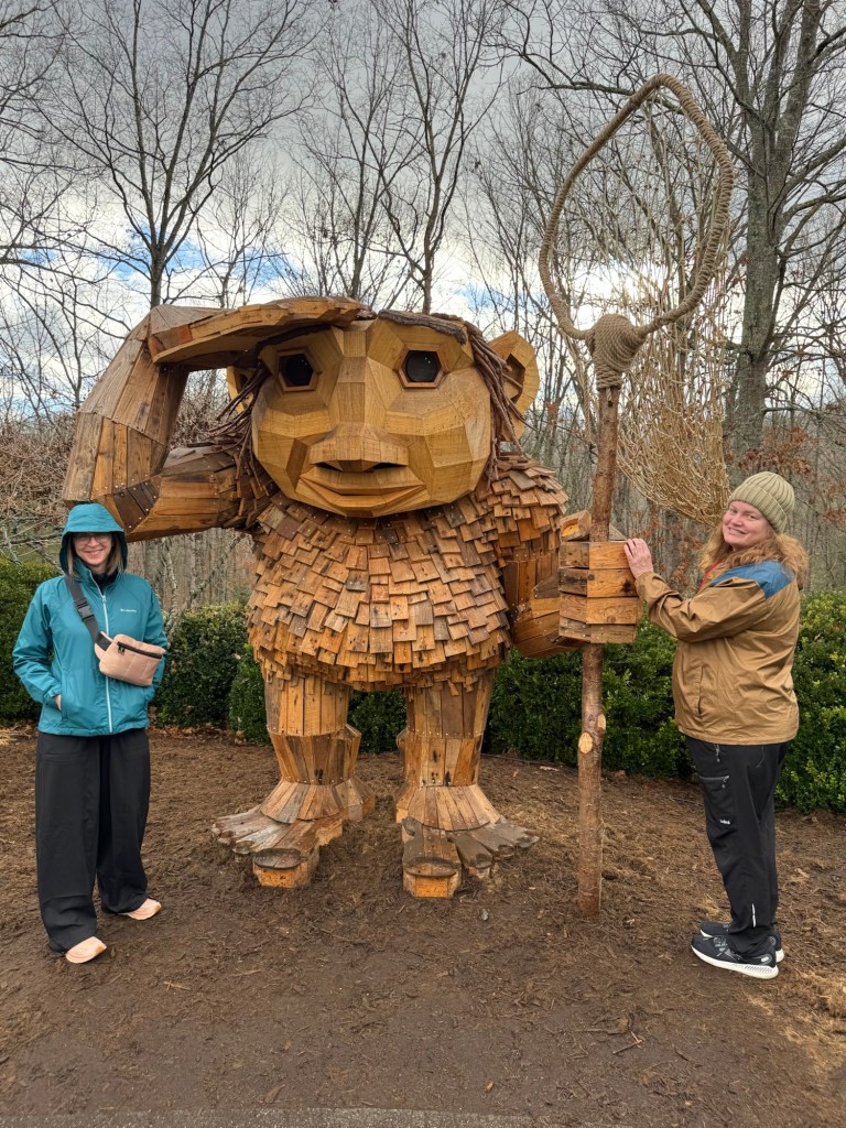 Before I begin, let’s learn the back story for these trolls. The 12 trolls displayed here travel approximately every six months. I believe they began in Europe before their official US premiere in Asheville. Their stay at the NC Arboretum concludes February 17, 2026, so if you want to see them on the east coast…hurry. Otherwise , you’ll have to wait until they travel to Southern California for their next tour.