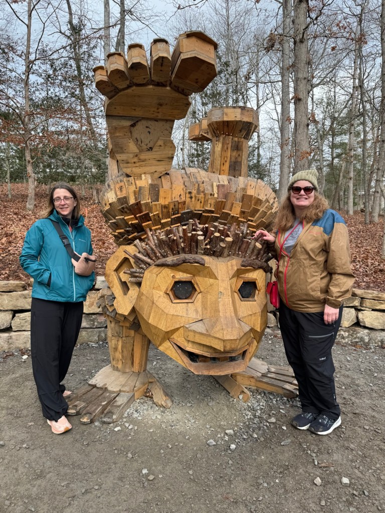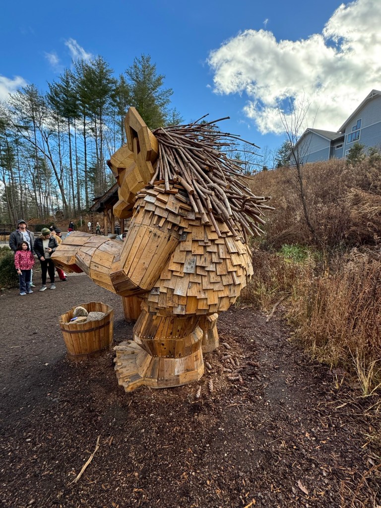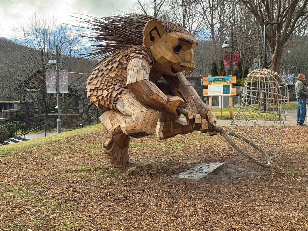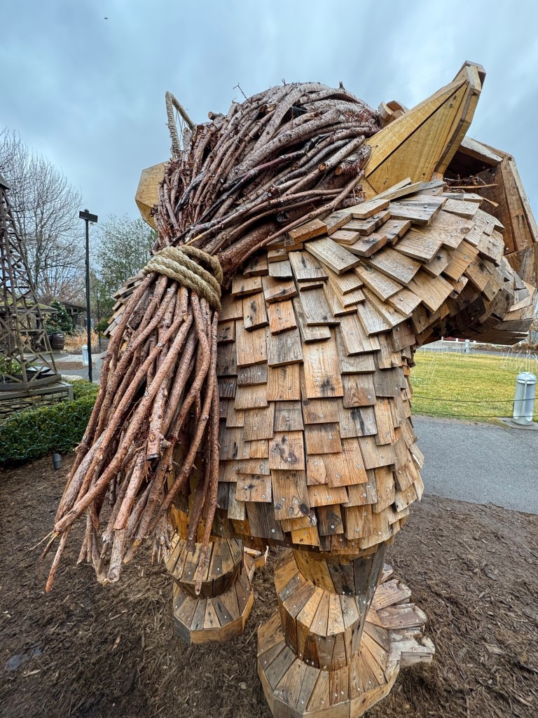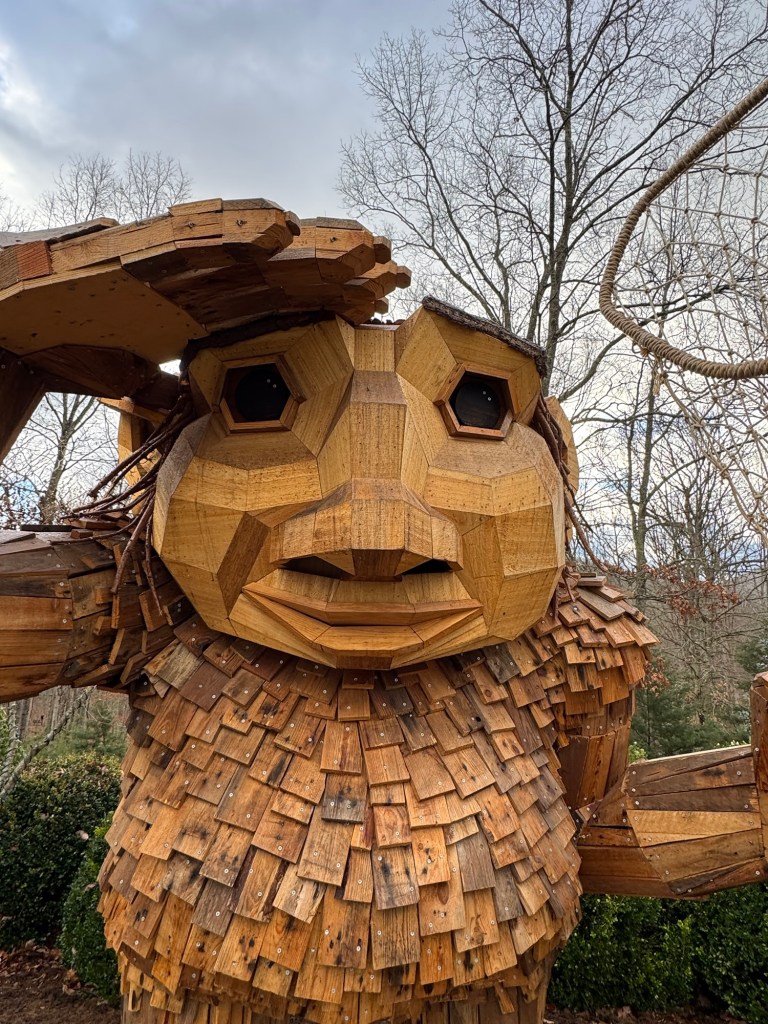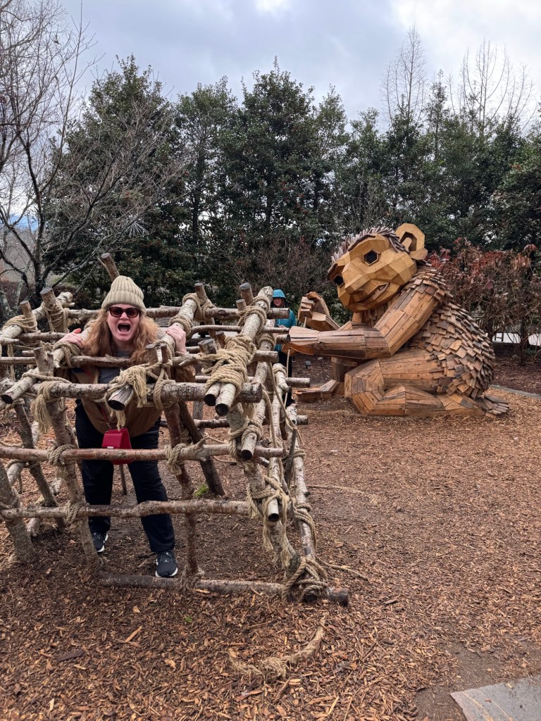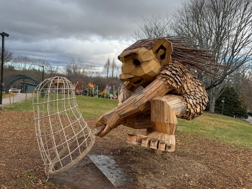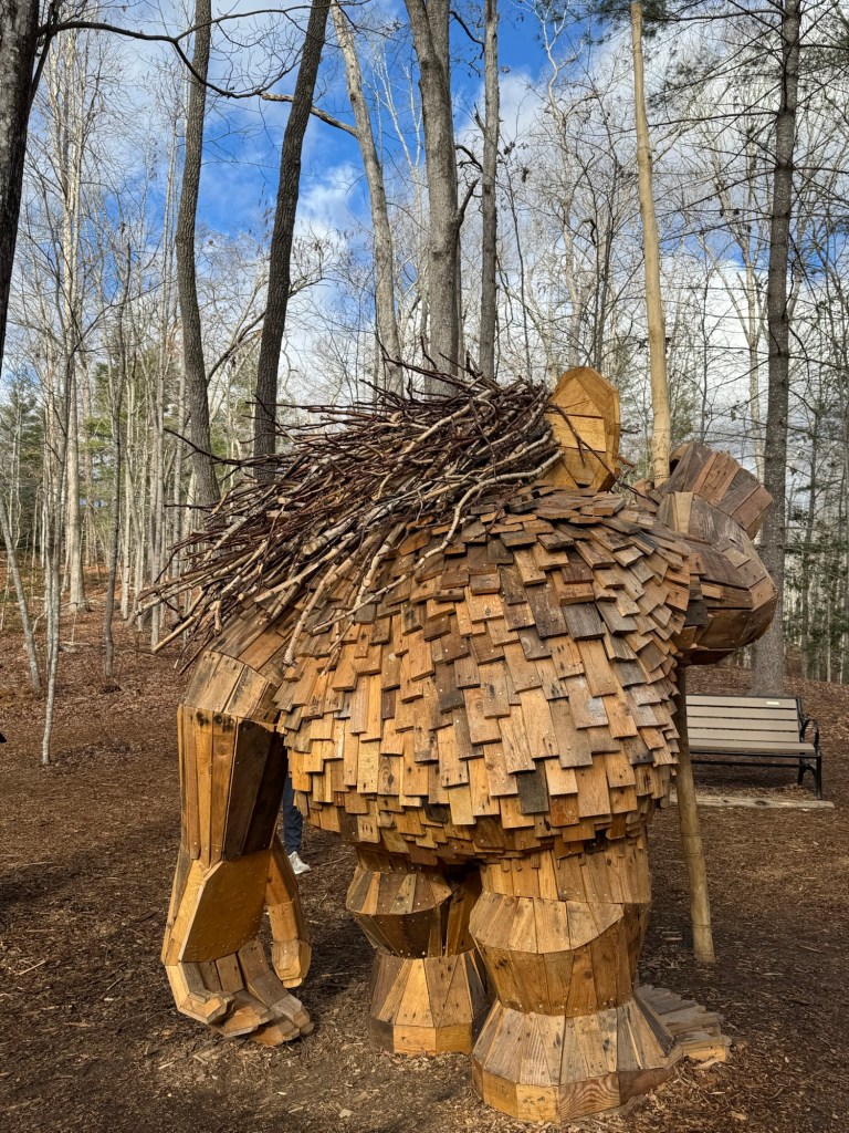 Before I begin, let’s learn the back story for these trolls. The 12 trolls displayed here travel approximately every six months. I believe they began in Europe before their official US premiere in Asheville. Their stay at the NC Arboretum concludes February 17, 2026, so if you want to see them on the east coast…hurry. Otherwise , you’ll have to wait until they travel to Southern California for their next tour.