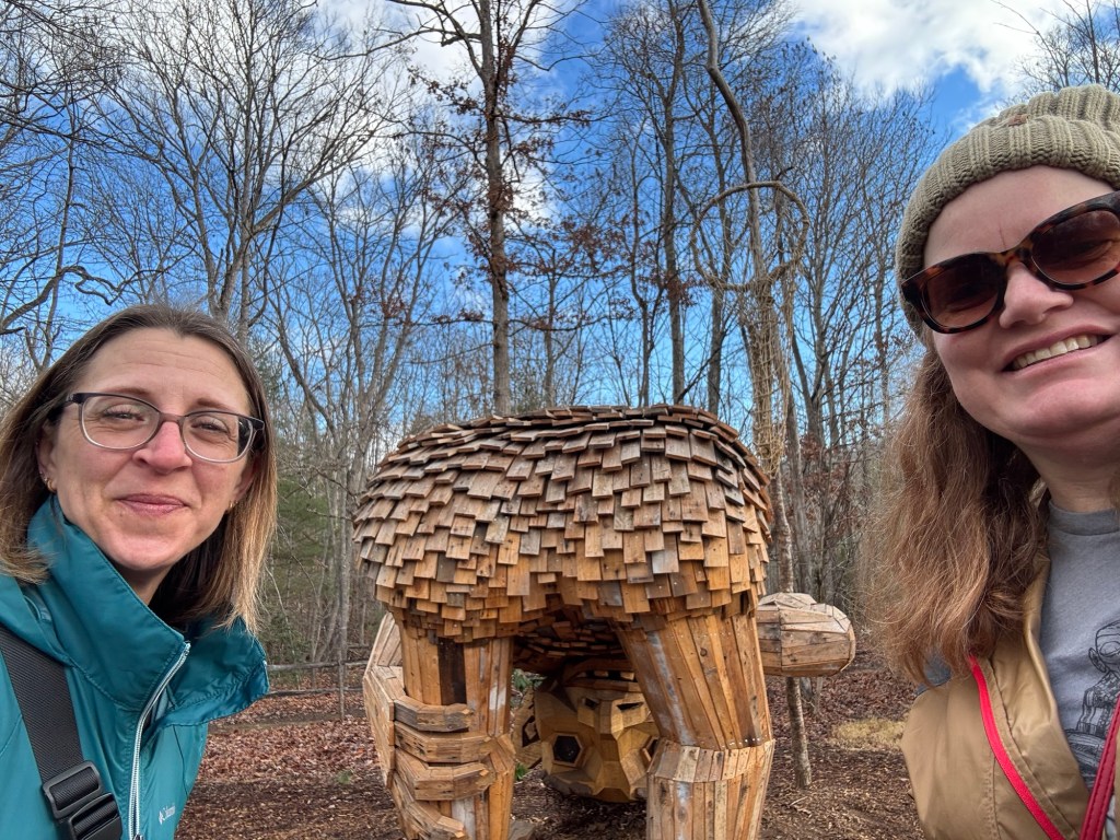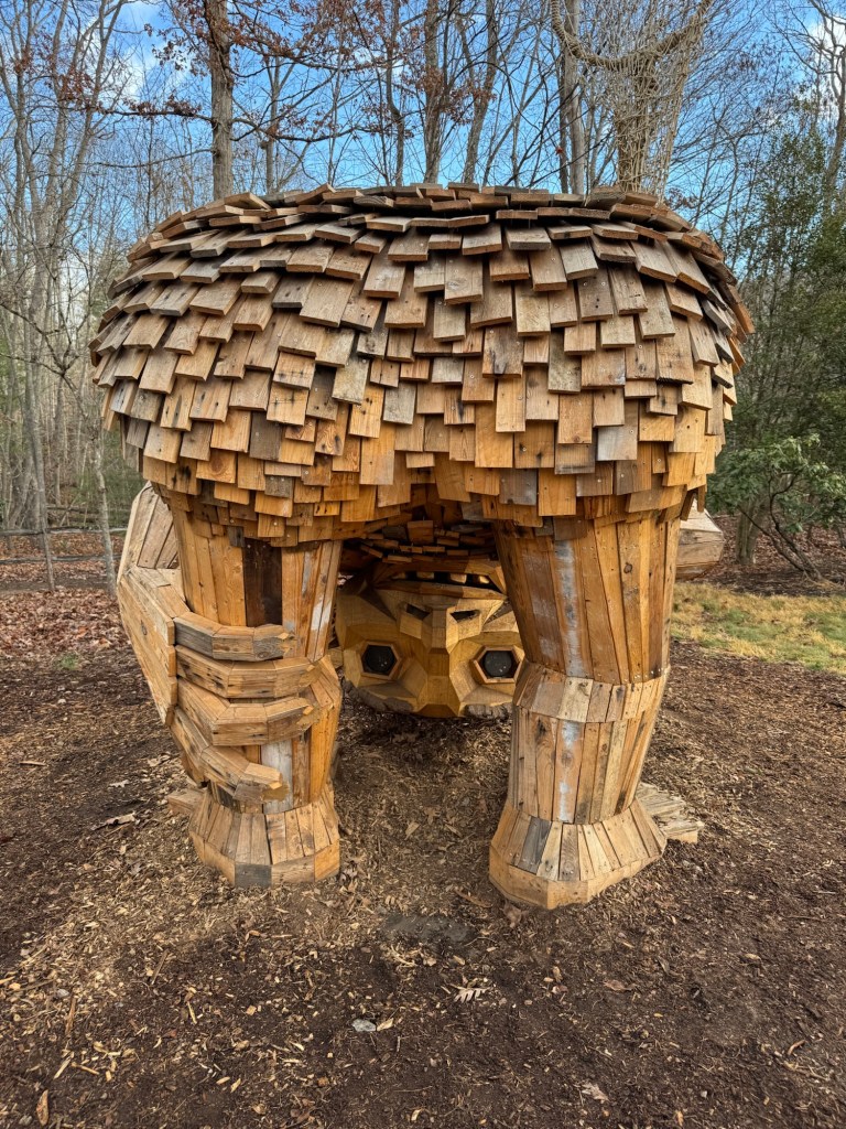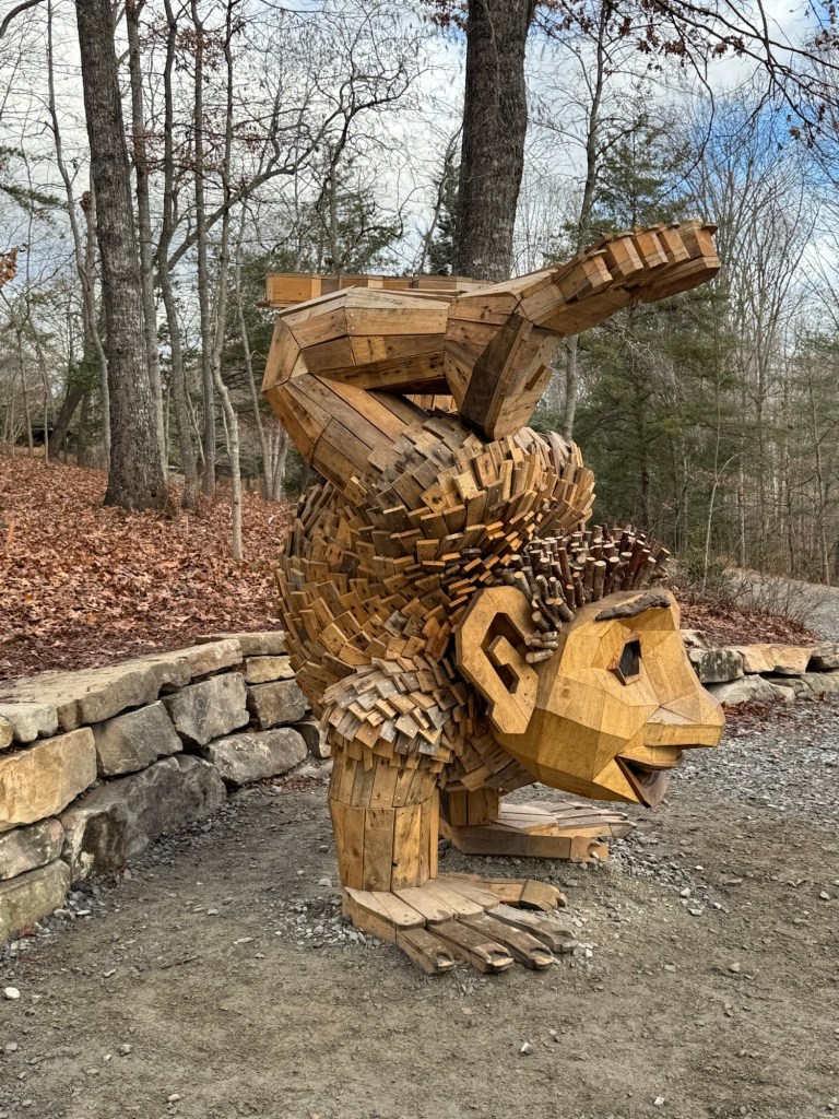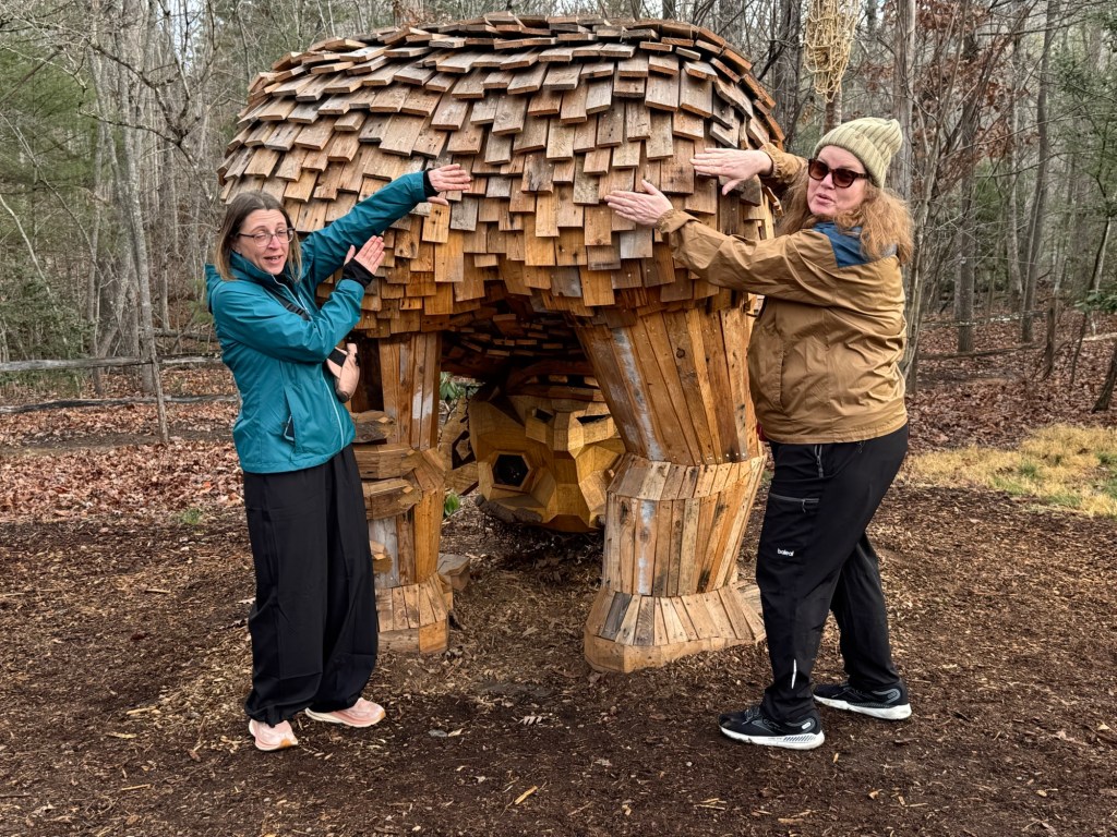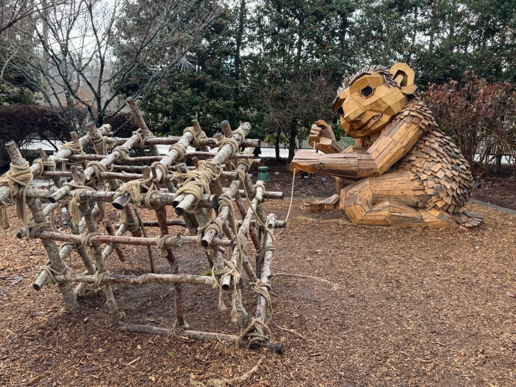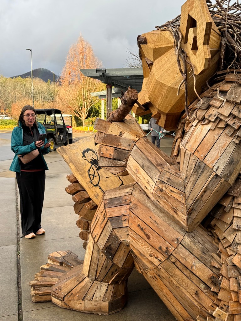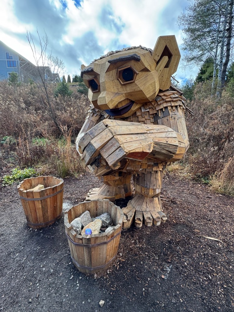 Before I begin, let’s learn the back story for these trolls. The 12 trolls displayed here travel approximately every six months. I believe they began in Europe before their official US premiere in Asheville. Their stay at the NC Arboretum concludes February 17, 2026, so if you want to see them on the east coast…hurry. Otherwise , you’ll have to wait until they travel to Southern California for their next tour.