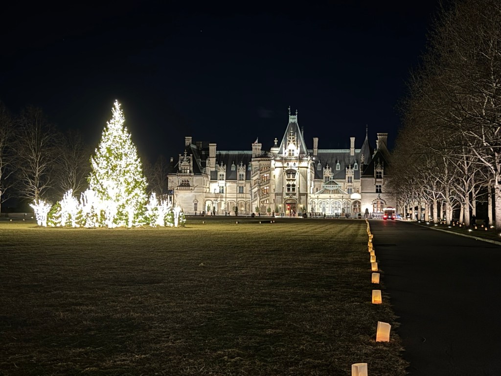 Because we spent the day touring the grounds, we knew where to park (Lot B). Luminaries lined the path to the vibrant home, and the placed just shone with breathtaking beauty.