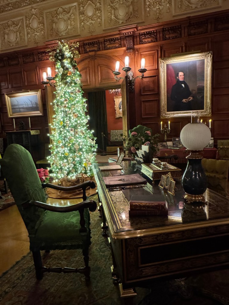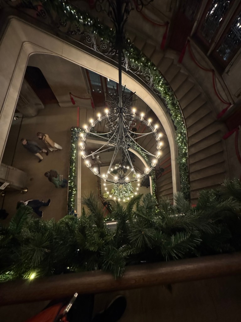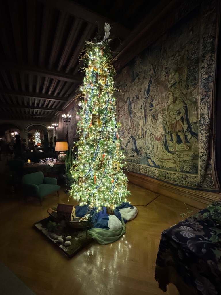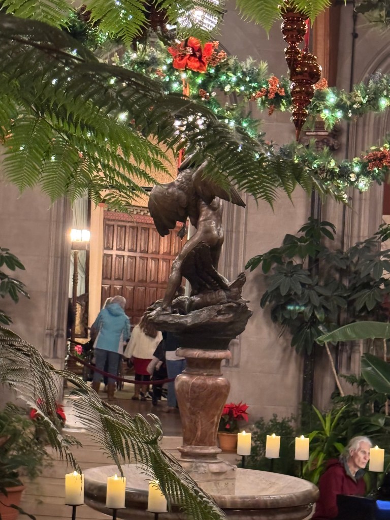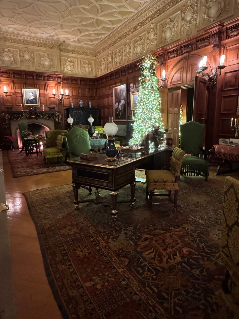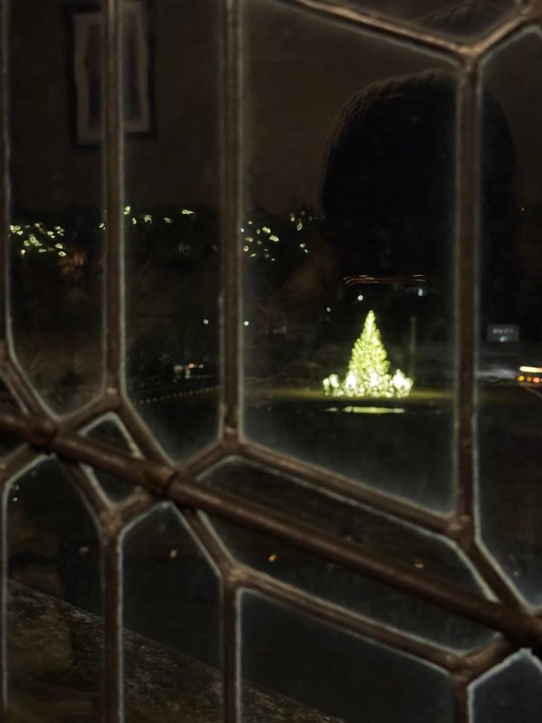Walking up the staircase provides different vantage points from the house. Several times I would stop to find what my eyes could see. I loved looking out the windows with all the decorations outside, and I reveled in the opportunity to gaze toward the rest of the Estate.