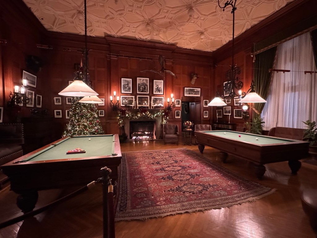 The first room we entered after the Conservatory had two lovely billiard tables and many sitting areas for guests to enjoy. Its location allowed guests to await dinner with plenty of entertainment. Of course, post dinner events likely occurred too.