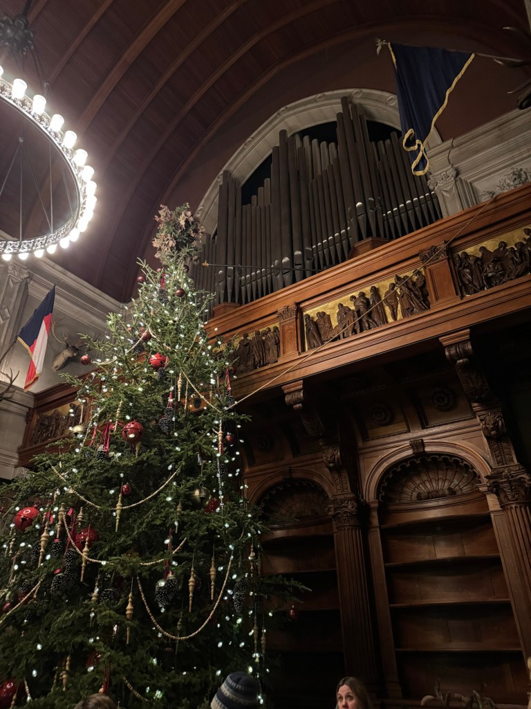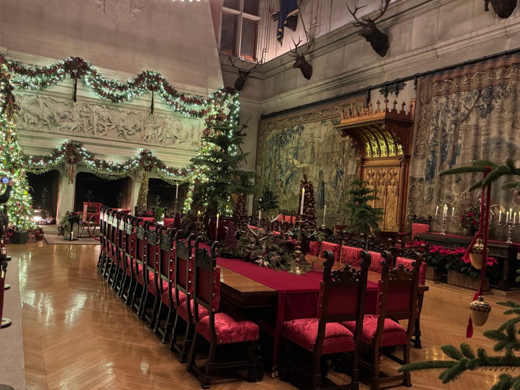 In addition to the table, three fireplaces provided warmth for diners. A 1916 Skinner Pipe organ adorns the room but was not installed until 1998. The original organ had been donated to All Souls Episcopal Church by George Vanderbilt, so the organ loft had remained empty for nearly a century.