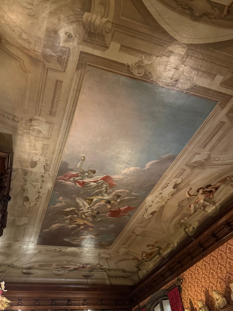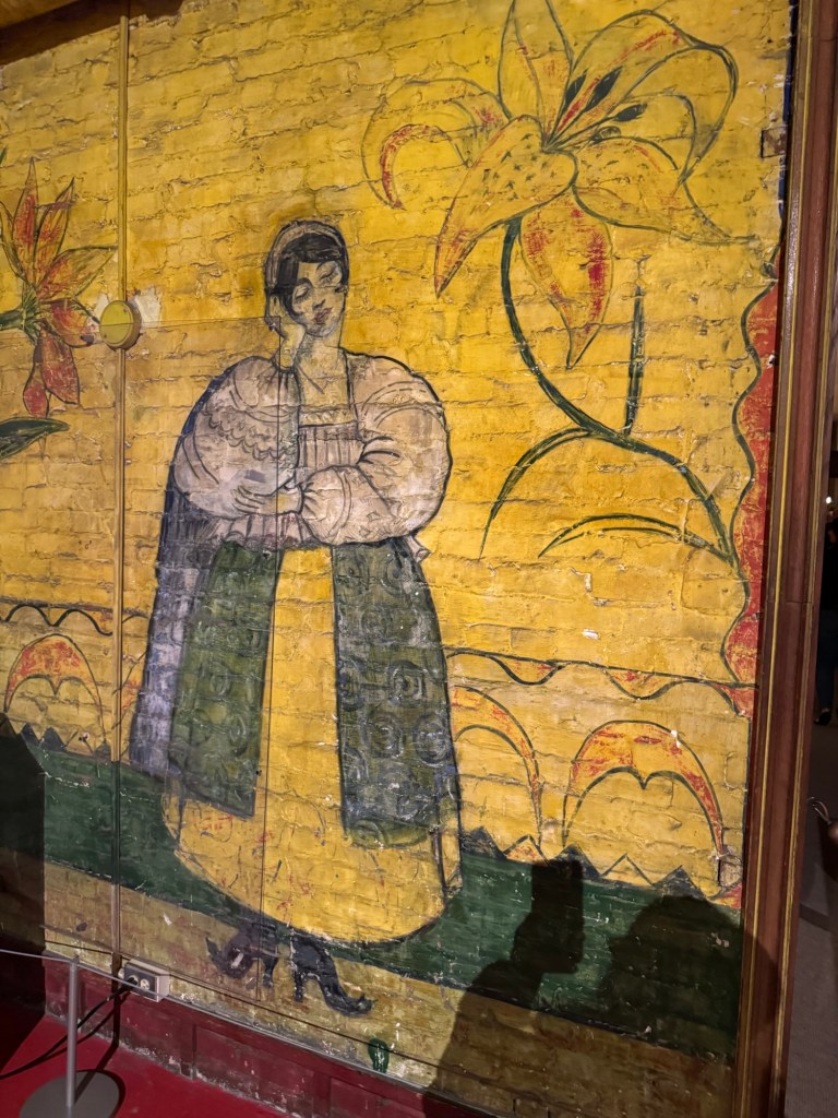 It’s funny that the room dubbed the Halloween Room actually has nothing to do with the holiday. The research on this room is on-going, but the current theory includes a Russian Cabaret, New Year’s, and an amazing 100 person party. The paintings took three weeks to create (taken from a Russian Cabaret performing set). Then on December 30, 1925 Cornelia Vanderbilt Cecil and her husband John hosted a Bohemian ball. Written reports from guests raved about the amazing event. I definitely thought this room provided a glimpse into the fun had by the family.