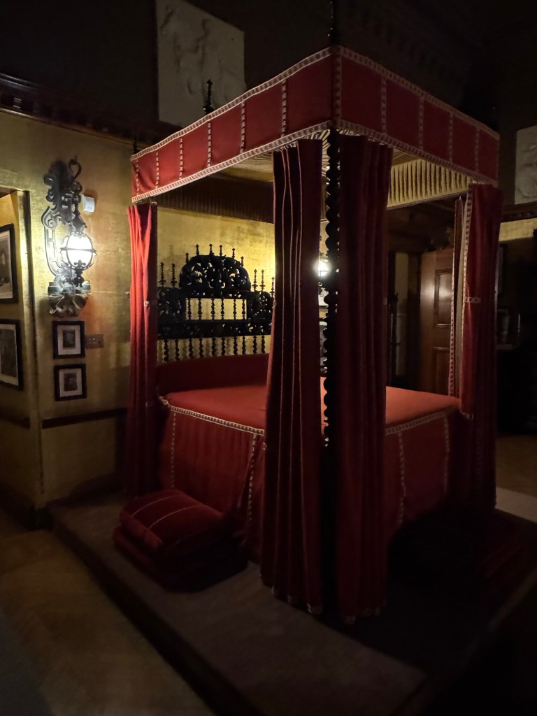 Should you wish to stay up all night, this is the room for you. As we stood inside George’s bedroom, I couldn’t help but notice the continuous rattling of the balcony door. Remember when I mentioned the wind? This room amplified it. I imagine the doors held firm in George’s day, but our visit didn’t experience the solitude.