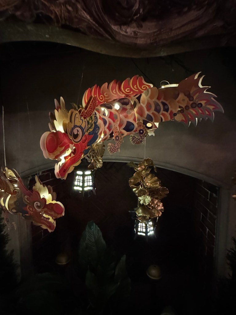 The breakfast room’s smaller space felt much more intimate than the Banquet Hall. Imagine the family gathering here for informal meals and gatherings. While we did not witness this at night, the large windows provide sweeping views of the mountains. I can only imagine how starting the day amongst an incredible view would feel.