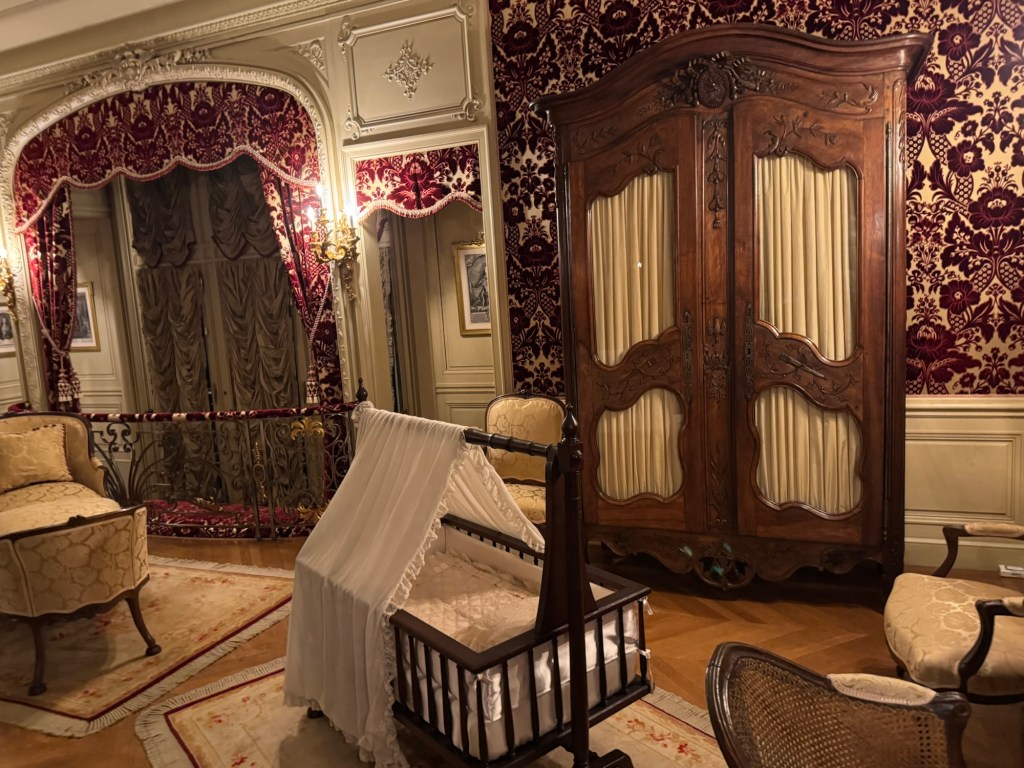 Nearby, the Louis XV suite, along with the Damask Room, Claude Room, and Tyrolean Chimney Room form the Louis XV suite. Edith gave birth to their only child, Cornelia, in the Louis XV room. Once she married and began to give birth, her two sons also made their great entrance here. This space proved its importance to the family.