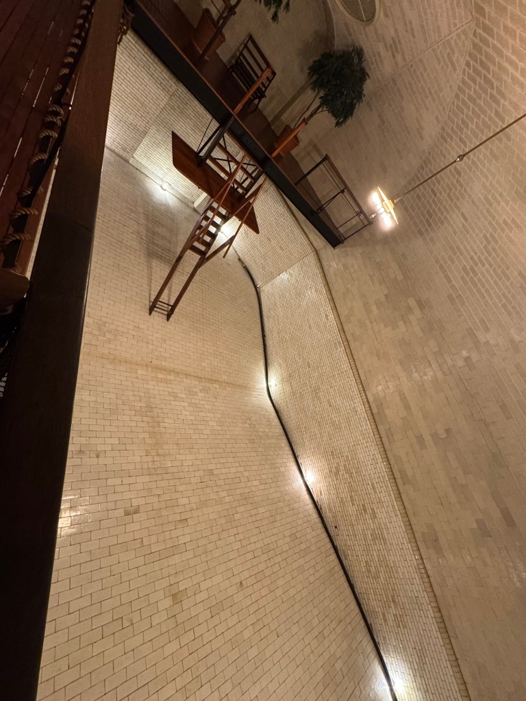 As for the swimming pool, 70,000 gallons of water were used to fill it. The pool had heat and lighting, but it lacked a filtration system. This meant draining and cleaning the pool every three days. Did I say 70,000 gallons of water…EVERY…THREE…DAYS??? Yikes! I imagine the pool was filled only when wanted, so hopefully the cleaning process and excessive use of water only occurred occasionally.