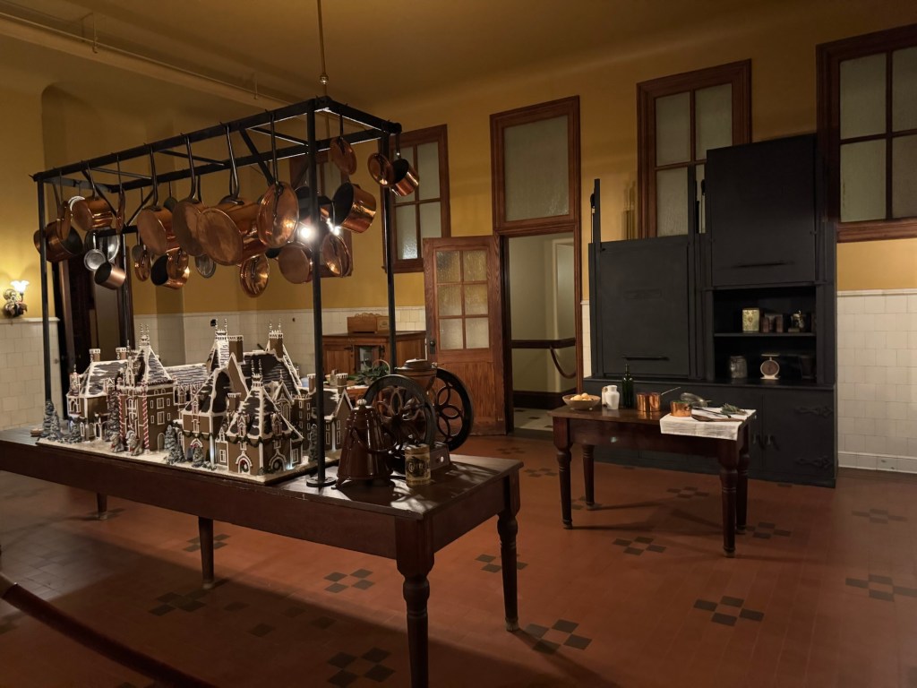 Food prep areas took multiple rooms and many, many staff. The servants had rooms near the kitchen area, so they could meet the demands of the family at any time. In addition to kitchen space, the laundry space also filled multiple rooms in the basement. Walking through these spaces, I wondered exactly how the staff was able to pull off such spectacular service. However, the Vanderbilts always treated the workers well, so I imagine everyone yearned to do their best.
