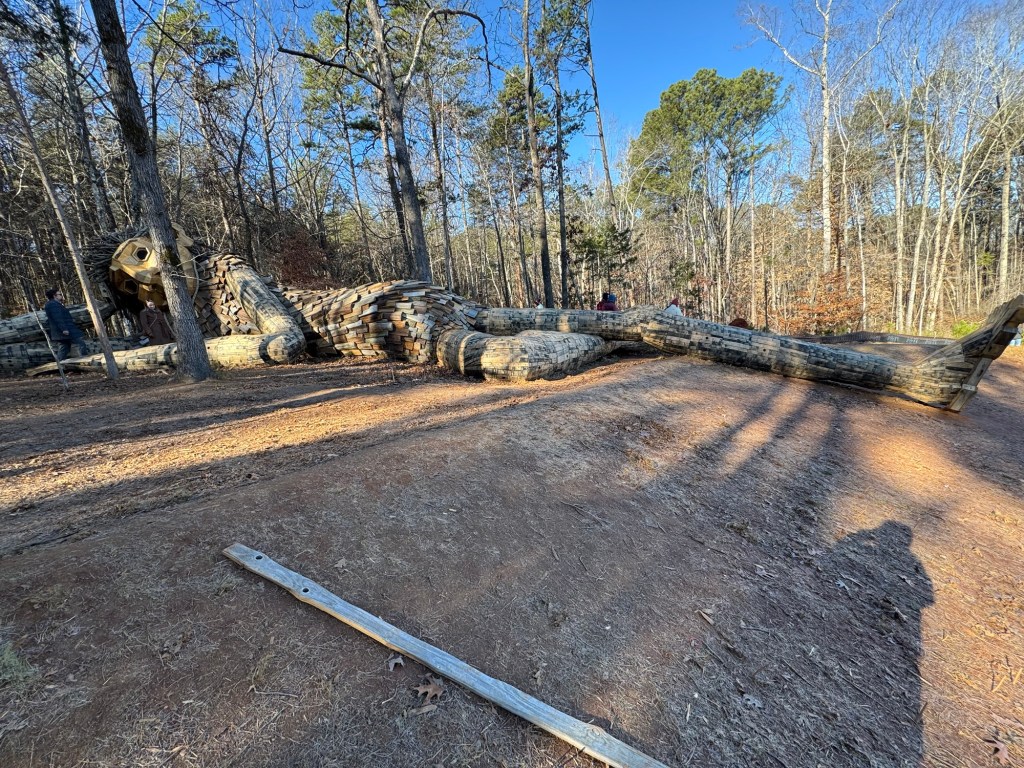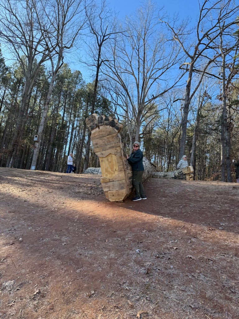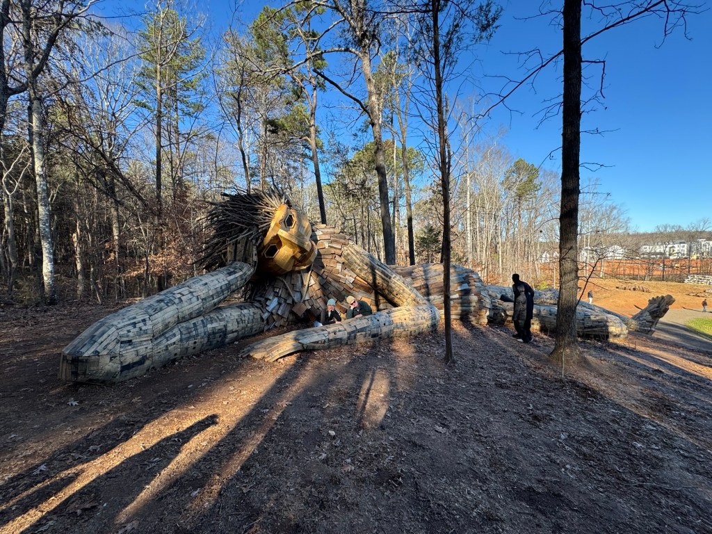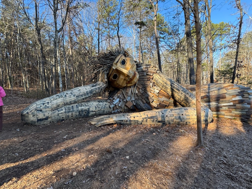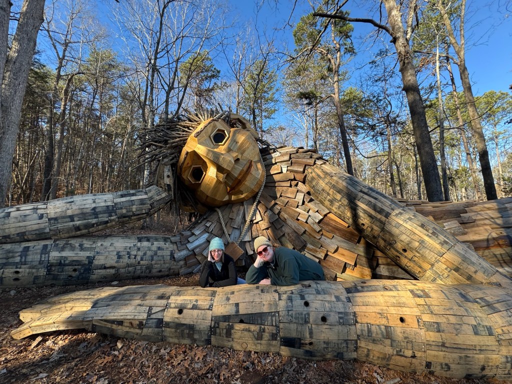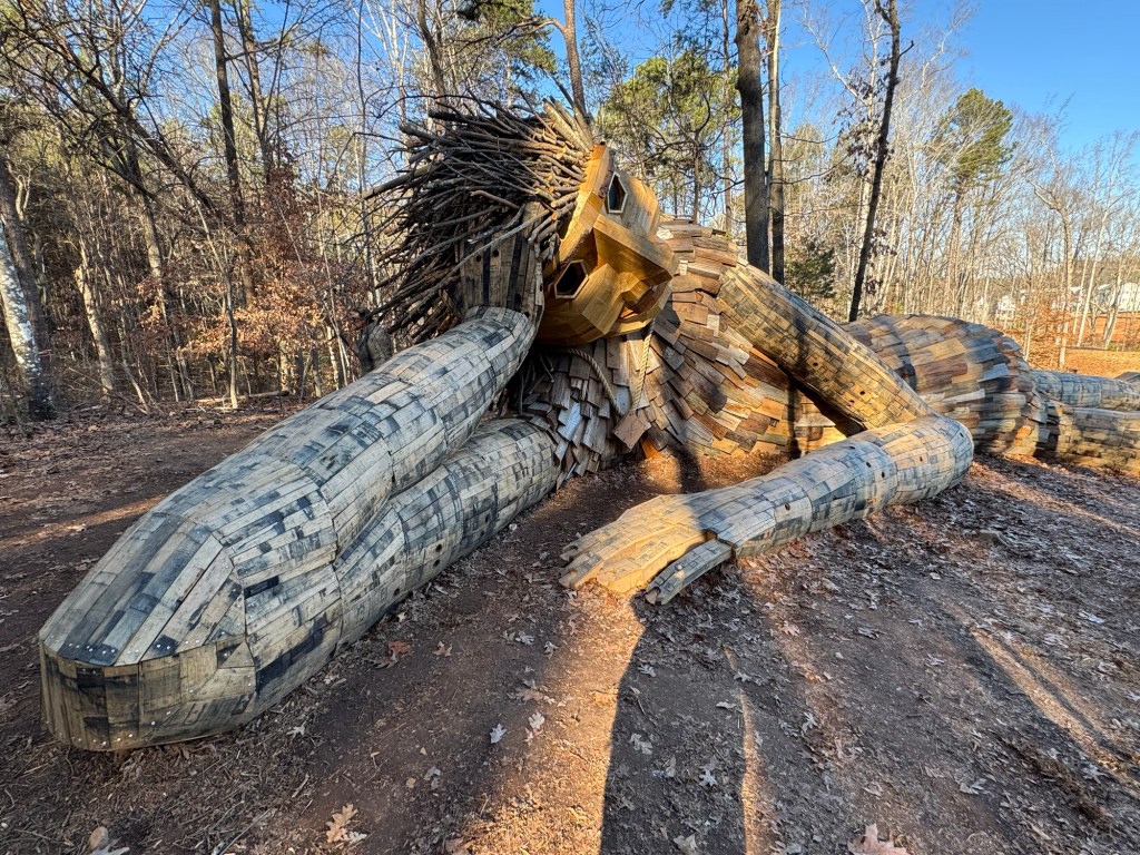 We left the comforts of the Biltmore Estate and decided to start our quest for the Grandmother Tree. What is the Grandmother Tree you might ask? Well, as you might recall from some of the other blogs, I have begun the Dambo Troll Hunt. In certain regions, Thomas Dambo has not only created permanent troll displays, but he has also taken it up a notch by creating a Scavenger Hunt. Within North Carolina, Thomas Dambo designed and built trolls in Charlotte, High Point, and Raleigh to create his hunt for the Grandmother Tree. She also happens to be very close to Raleigh.