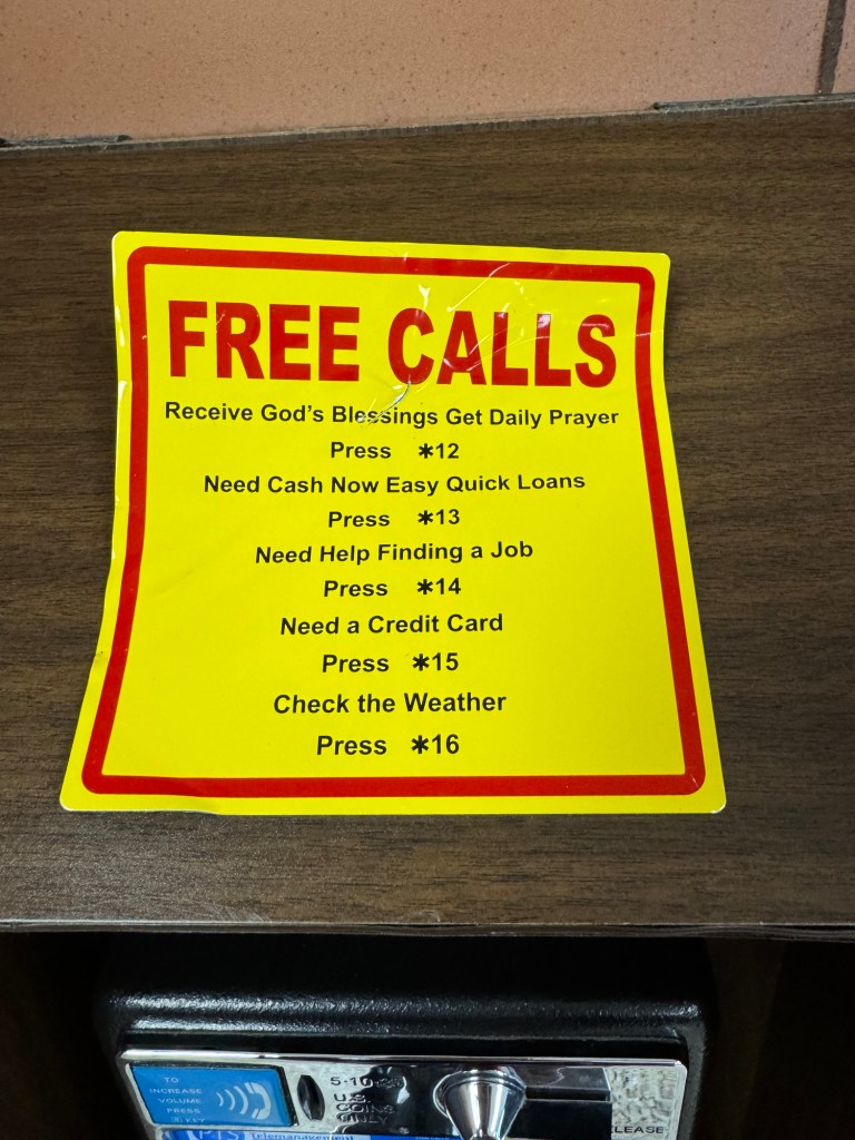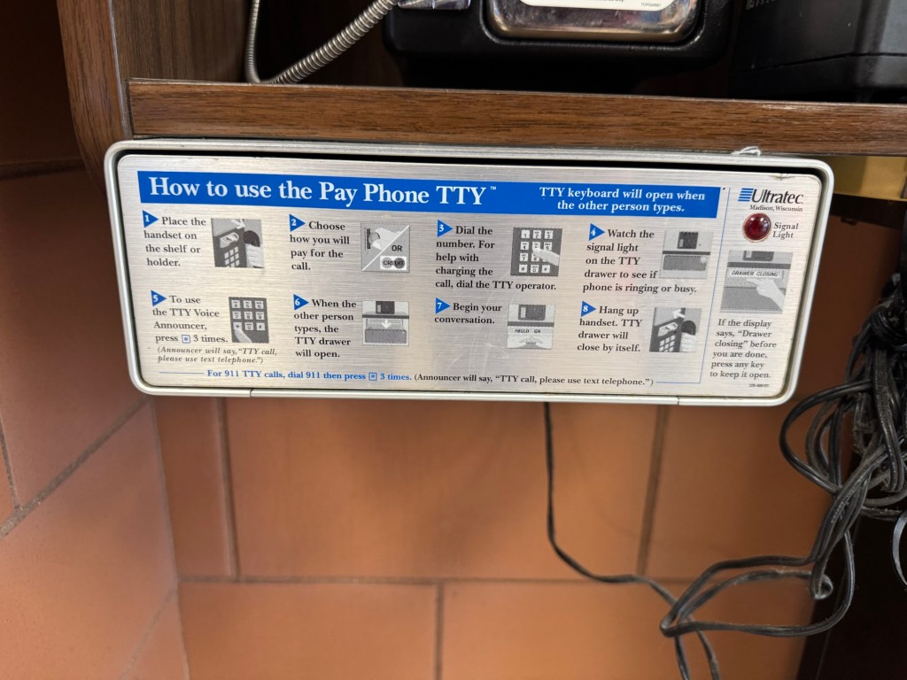 We saw a pay phone! It has been years since I’ve run into a working pay phone, so imagine my excitement when I witnessed a relic from my past operating at a rest area. While directions for obtaining credit cards, getting a job, or learning the weather featured itself nearby, I thoroughly enjoyed the directions on how to operate the phone itself. So tell me, how comfortable are you with using a pay phone? I’m pretty sure, I’m a champion user.