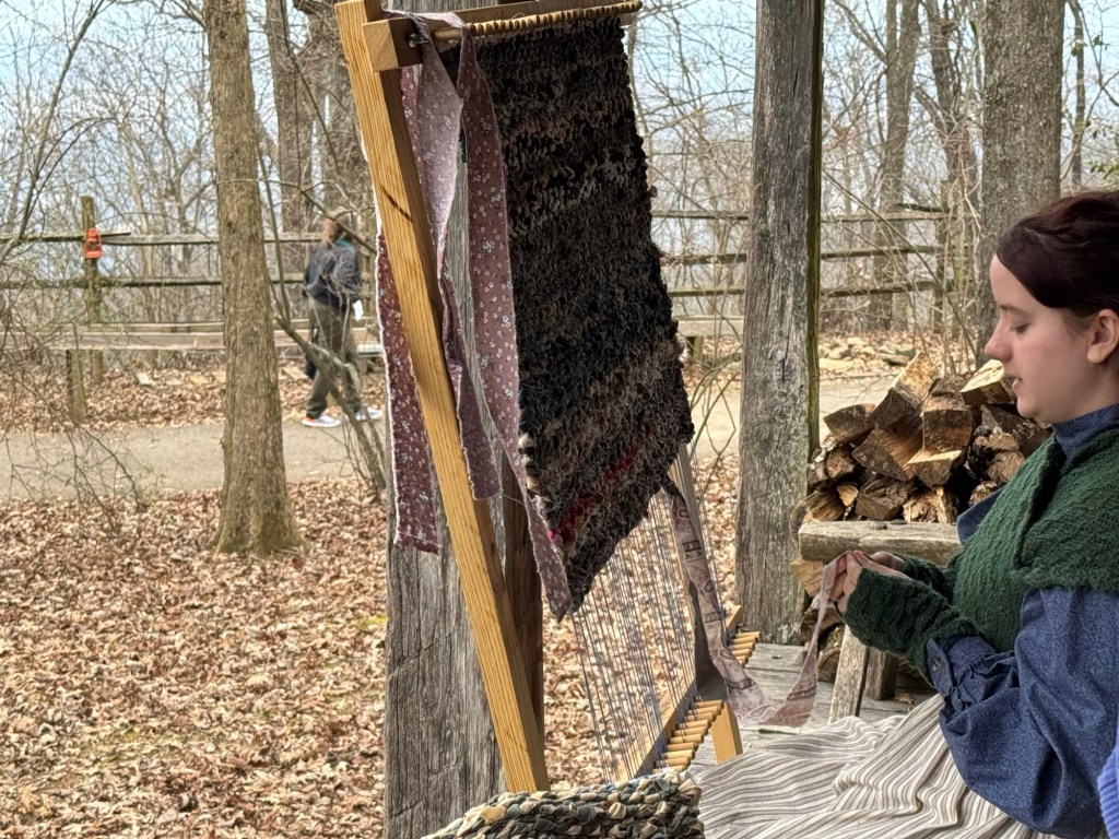 The ticket counter provided me with a map of the place as well as an itinerary. Having an itinerary surprised me. I could watch rope making and knot tying, woodworking demos, spinning, and loom weaving. Ah, this place provided historical learning through public presentations. Great!