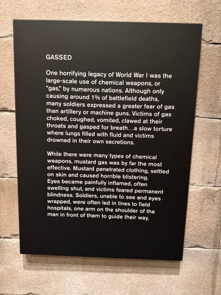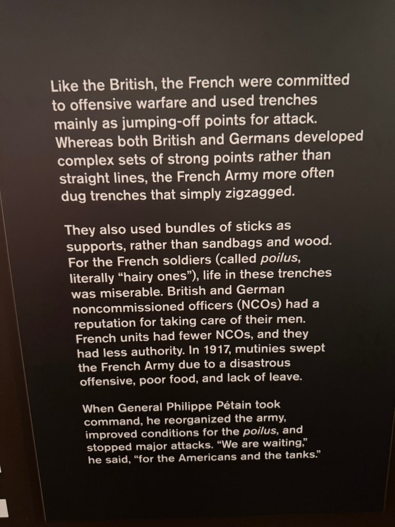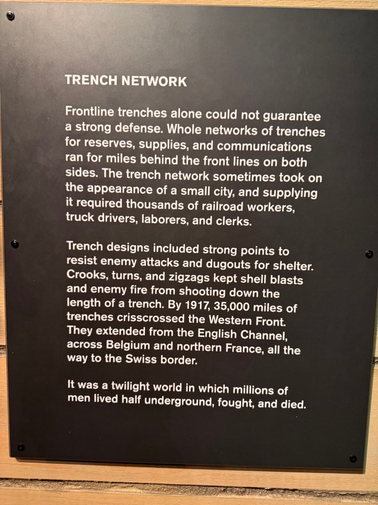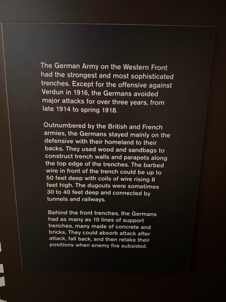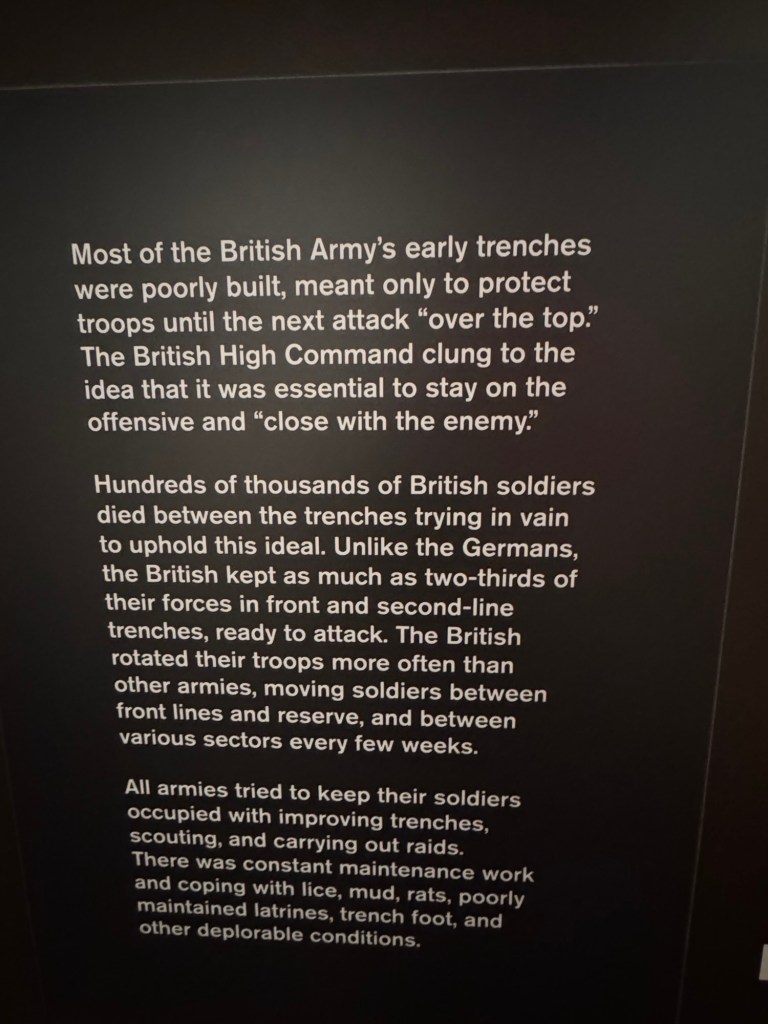 One of the most powerful displays depicted life in the trenches. Within the main portion of the museum, stories and artifacts appeared. Around the outside of the museum (think counterclockwise circle), different examples of trench warfare was explained.