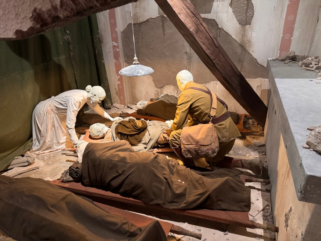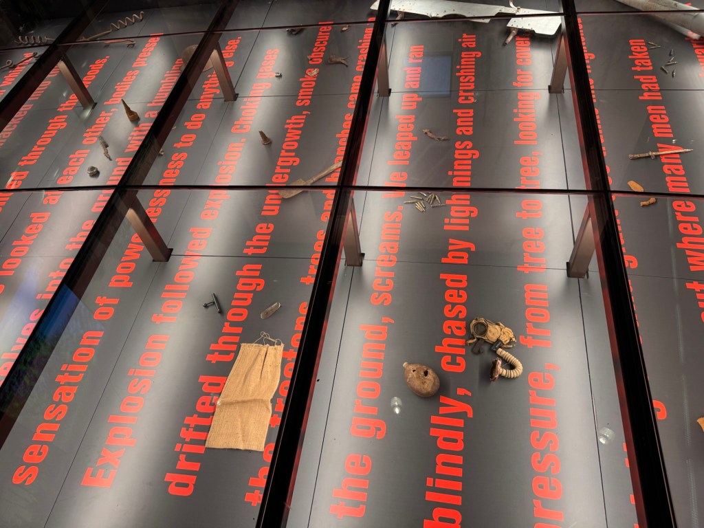 The museum also utilizes their floor space. Guests walk on another powerful display depicting historical reflections on the gruesome nature of war.