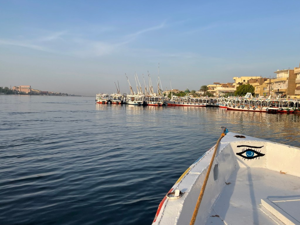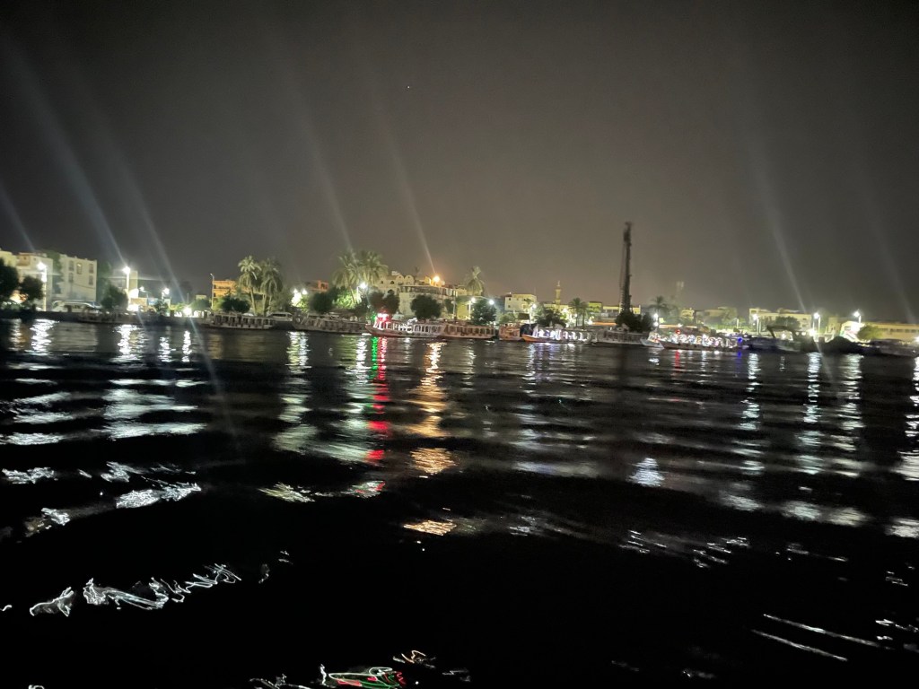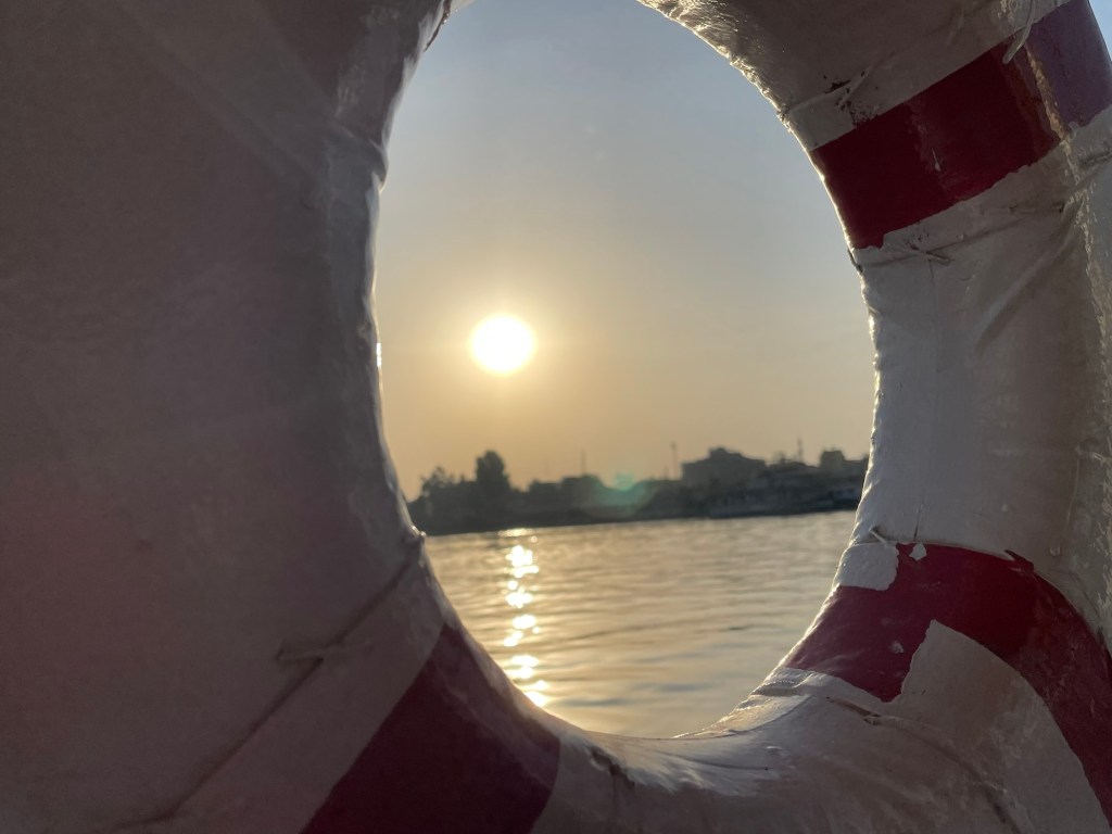 By 4:34 AM, we were on a boat. The boat took us across the Nile. While traveling, we were given directions and information about taking flight. First of all, the different hot air balloon companies had to test the wind. They used a mini hot air balloon to test the speed of the wind. If the mini balloon failed the test, we would not be able to go. I kept praying everything would work out.