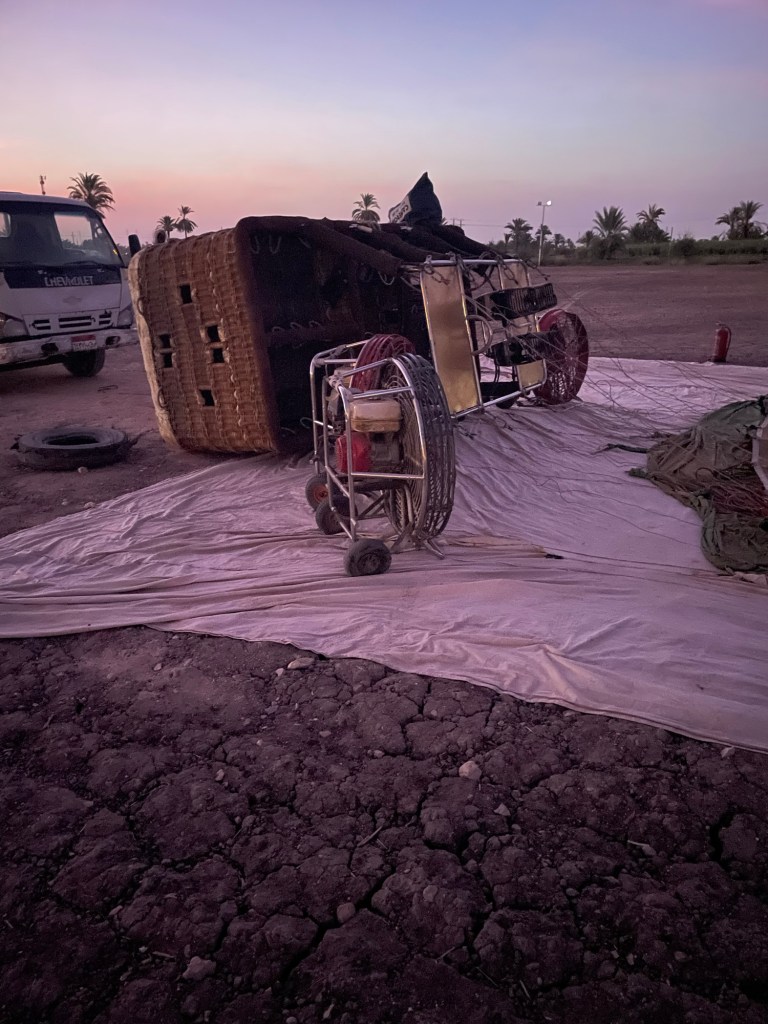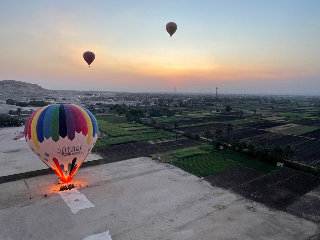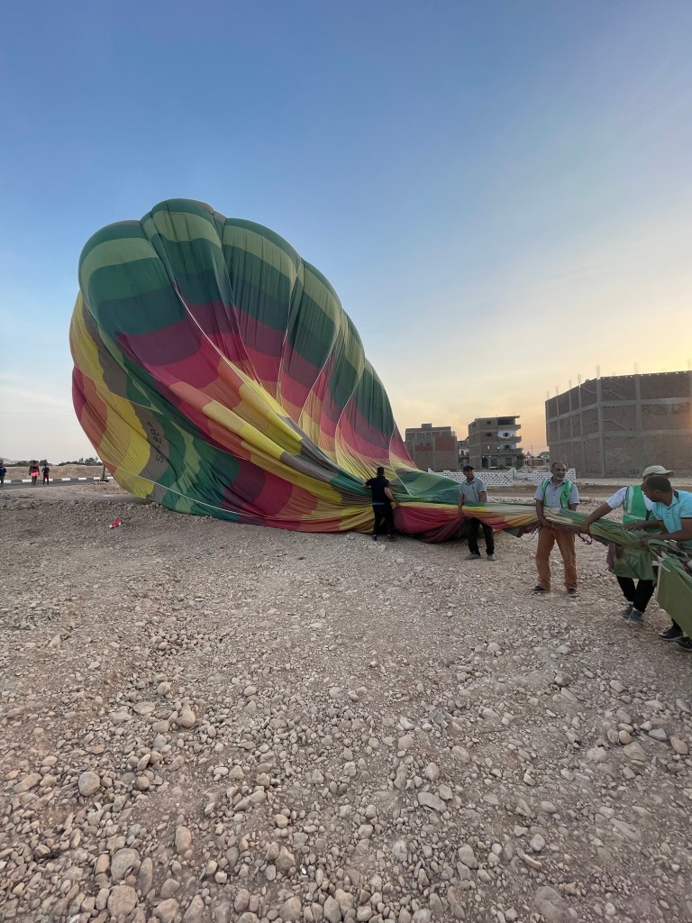 Our one goal was to land before reaching the Nile. I saw other balloons beyond what I deemed safe, but our group began to focus on the landing. We had to land between buildings and electrical wires 😳.