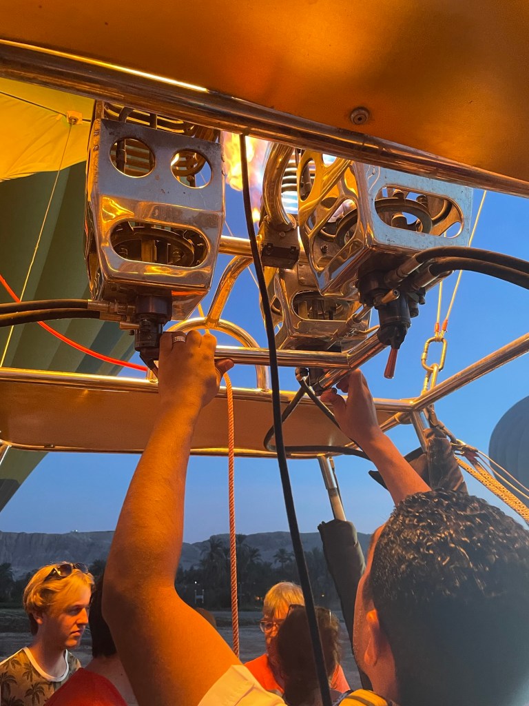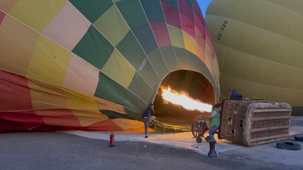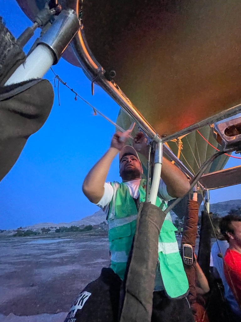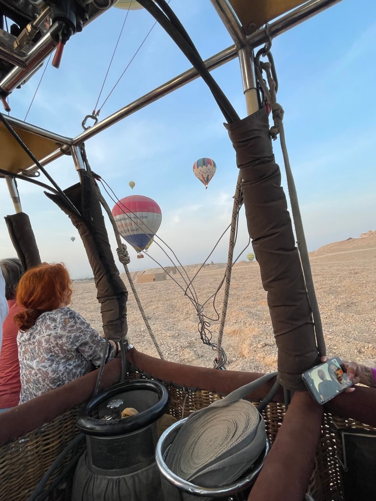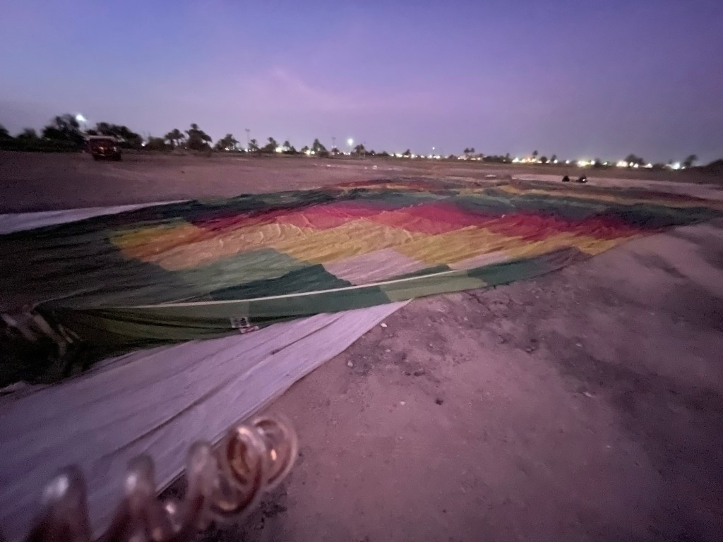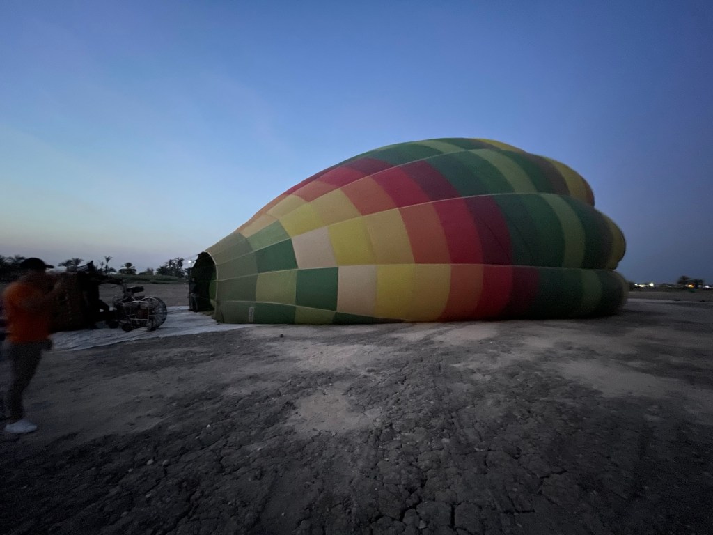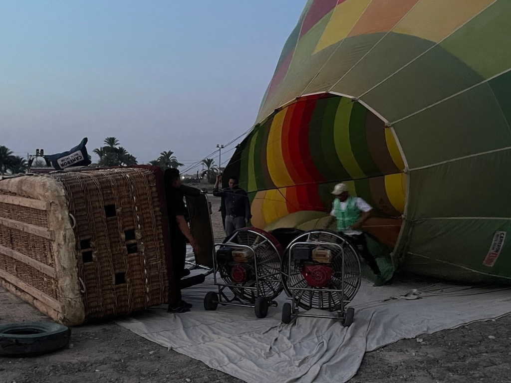 Then, one morning I awoke, and we had a surprise flight to Luxor. There were some business obligations we had to fulfill (restaurant and hotel inspections), so I thought nothing of it. One evening as I was headed to bed, I was given directions. We would wake up at 3:35 am because a surprise event hit our calendar, and we could not miss it. Of course, I felt giddy because I knew–hot air ballooning was in my future!!!