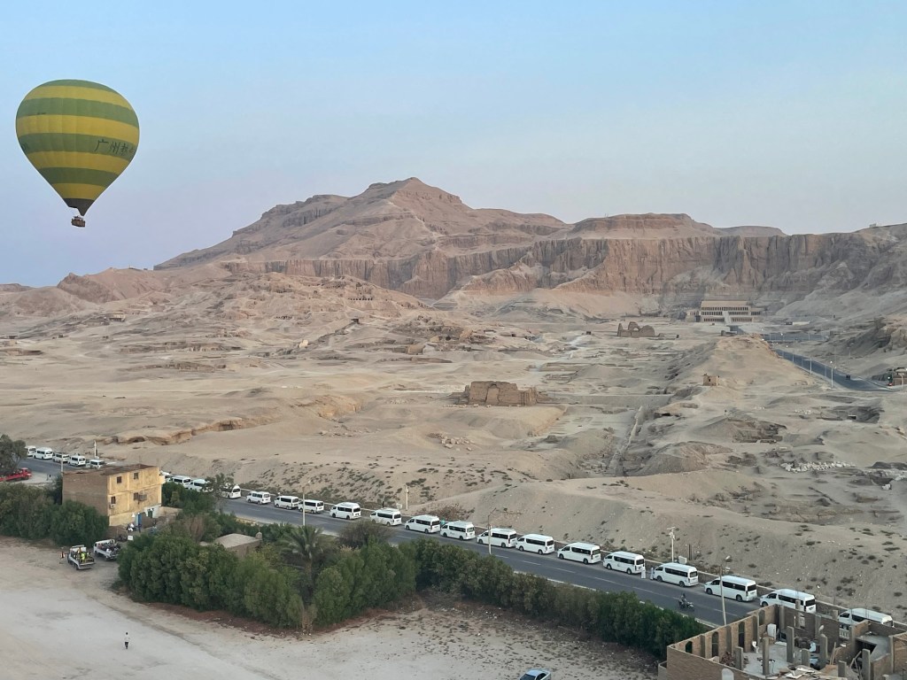 What is on your bucket list? My bucket list continues to fill with new thoughts and ideas, and one item, that has been fulfilled, took much longer than anticipated. If I really sat to think about the times I’ve visited Egypt, I could come up with an accurate number. However, I’d loosely guess a dozen visits has been my total. In all those times, the one thing I’ve always wanted to do included a hot air balloon over the Valley of the Kings.