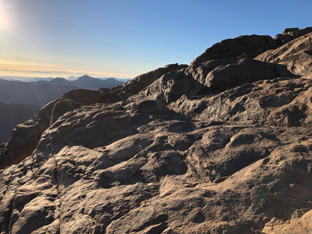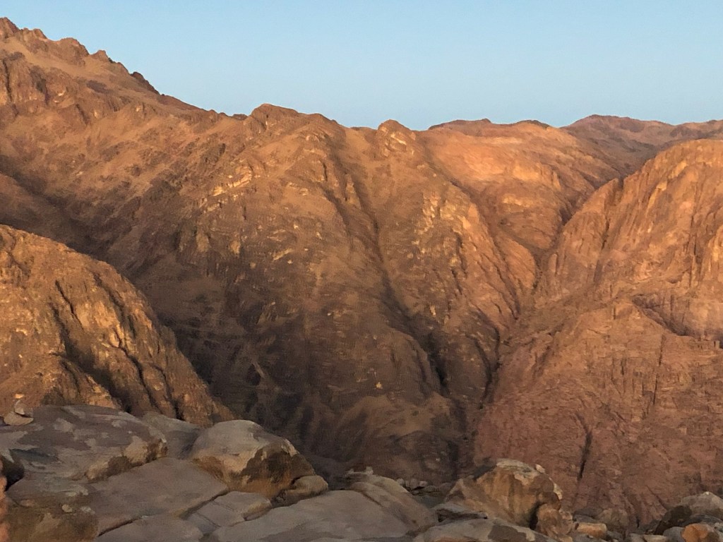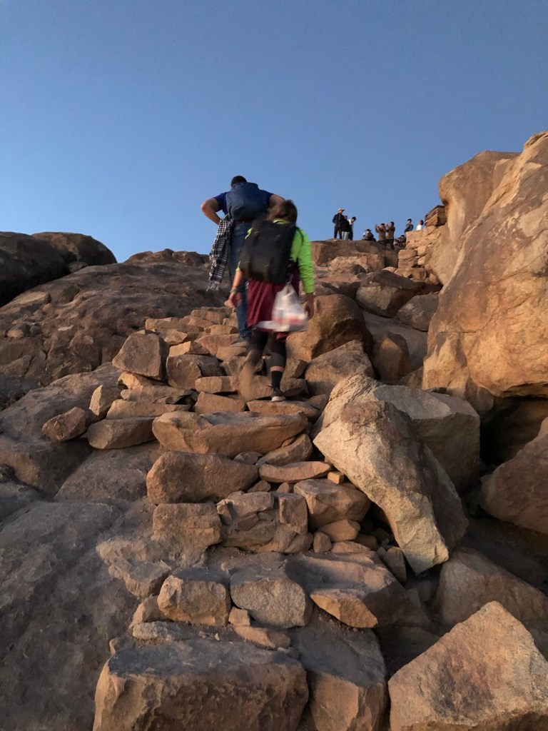 I loved the quiet peace that surrounded me. There was almost a reverence as we moved. The stars…how they shone upon us! Counting each star would have taken a lifetime as they filled the sky. I loved it. In addition, I spent some time contemplating the significance of this place. In the Christian religion, Mt. Sinai provided Moses with access to God. He received the Ten Commandments and heard God as a burning bush (more on that later). At any rate, I filled my time with thought and wonder.