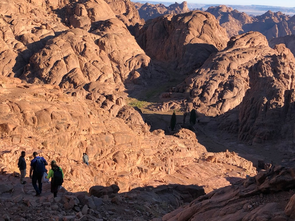 Much to soon it was time to descend the mountain. For this portion, we walked all the way to the bottom. We passed many locations, and I began to wonder…where were the people staying as they waited for Moses to return with guidace for their lives? Where did Moses encounter the burning bush? How close to the actual events was I? There was little to no foliage, so hiding from that once hidden sun was not possible.