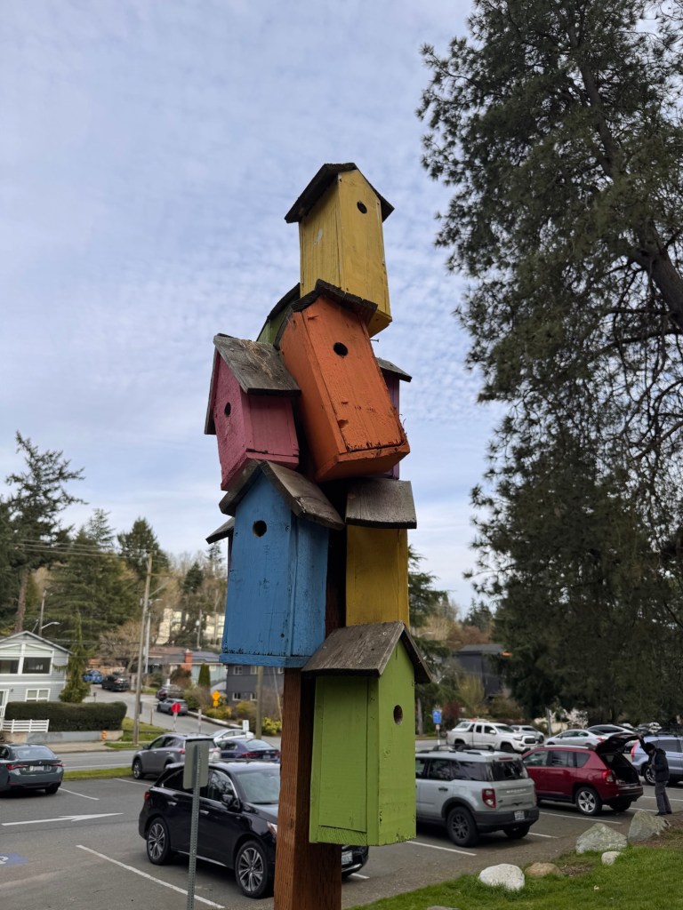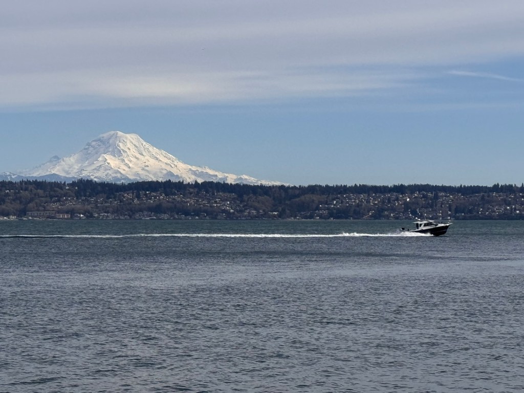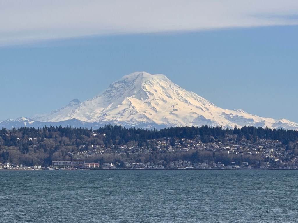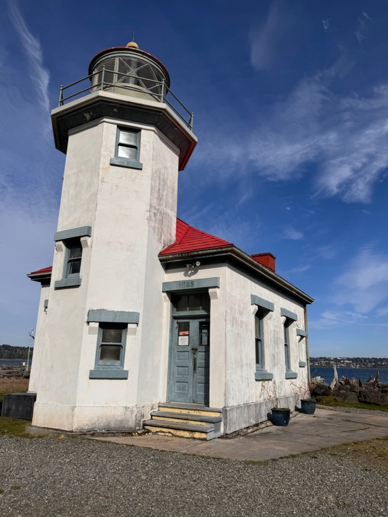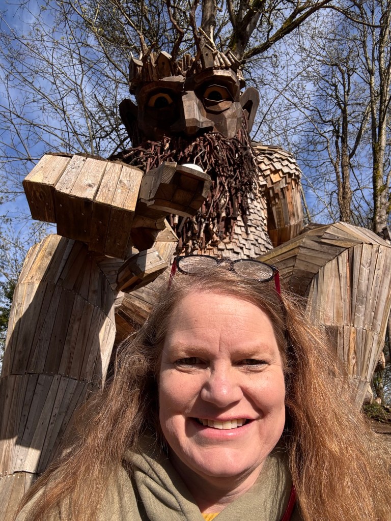 I loved Vashon. My goal was Dambo’s troll, but the views from the lighthouse stopped me in my tracks. I intended to see Oscar the Bird King first, but I took the wrong trail and began with the lighthouse. The day sparkled in the sunlight, and Vashon treated me to spectacular views of Mt. Rainier. As I walked the shores of Vashon Island, I stood amazed at the details I saw on Mt. Rainier. The clear skies even provided views of commercial planes flying past the mountain as they headed into Seattle’s airport. During this moment in time, I had overwhelming gratefulness for the amazing journey I had undertaken. I felt at peace and very happy.