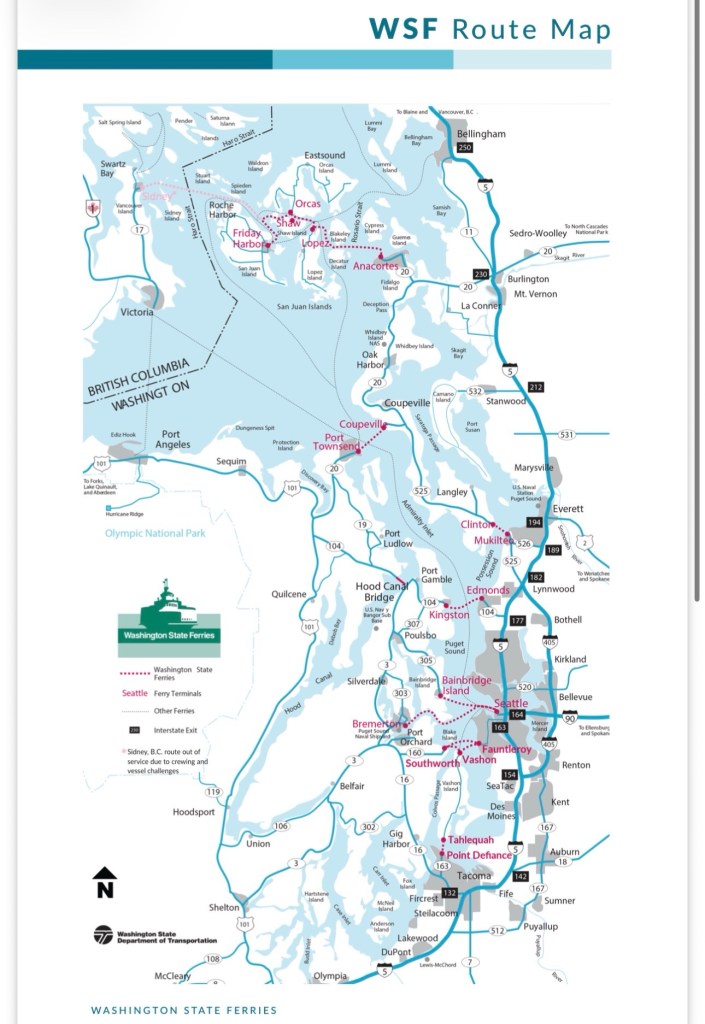 Do you know how all the islands are laid out in western Washington state? I admit I do not, and after studying a map and driving on a few islands, I still have no educated way to describe it. Below is a map from the Washington State Ferries site that provides a visual of the land. The best I can tell you is I spent ample time traversing Puget Sound while trying to island hop.